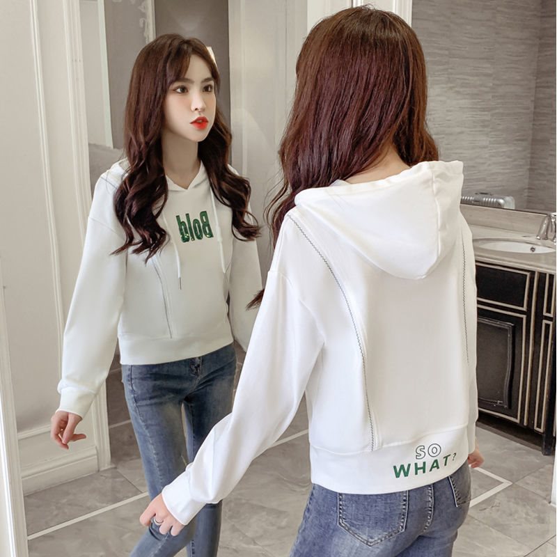 Hooded Sweatshirt Women's Autumn 2022 New Fashionable Korean Style Fashionable Loose Street-blowing Coat Women's Long-sleeved White Top