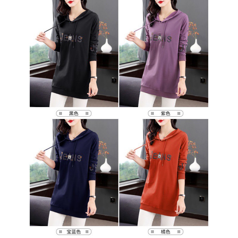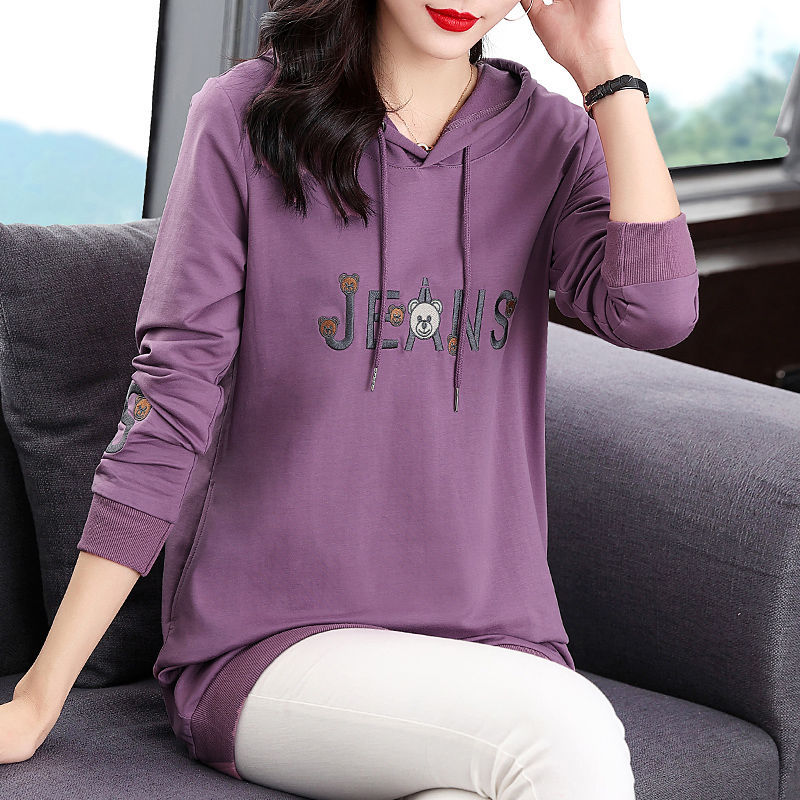 Hooded thin sweater women’s spring and autumn new style long sleeve shirt base shirt plus size long coat coat