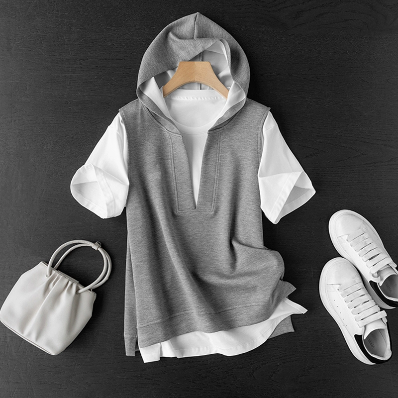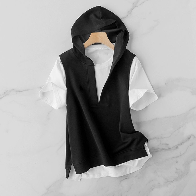 | nameOriginal | Hooded v-neck vest solid color t-shirt versatile fashion set |