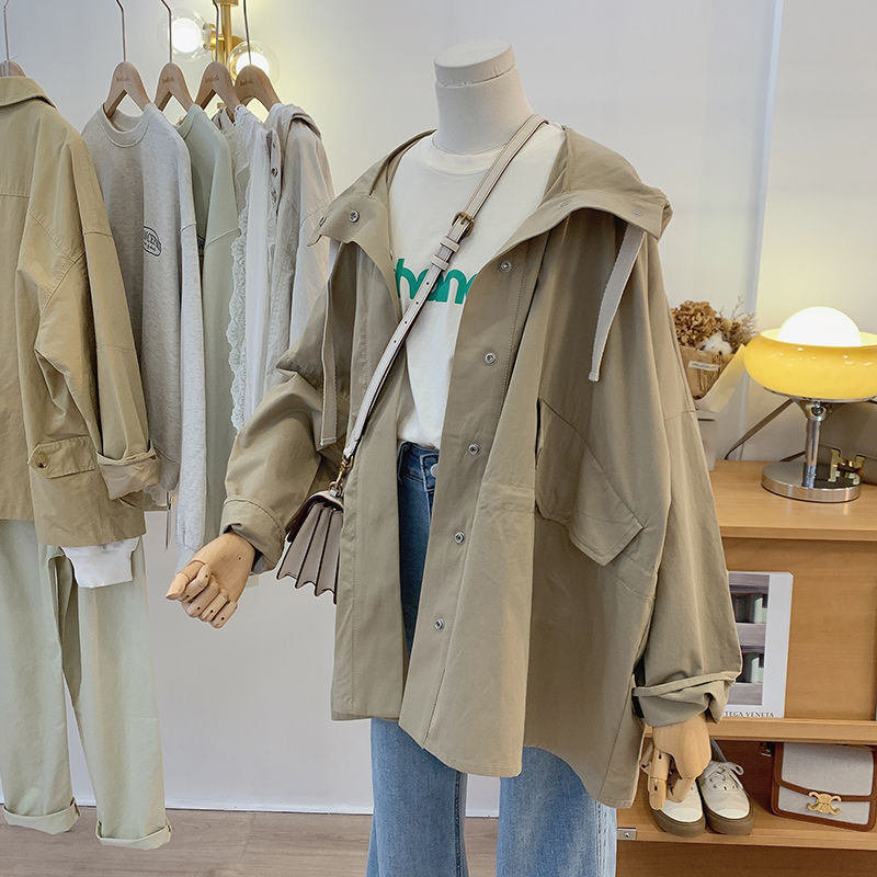 | nameOriginal | Hooded Windbreaker Coat Women's Spring and Autumn 2023 New Korean Style Loose Slim Look Small Men Mid-length Coat Women's Coat |