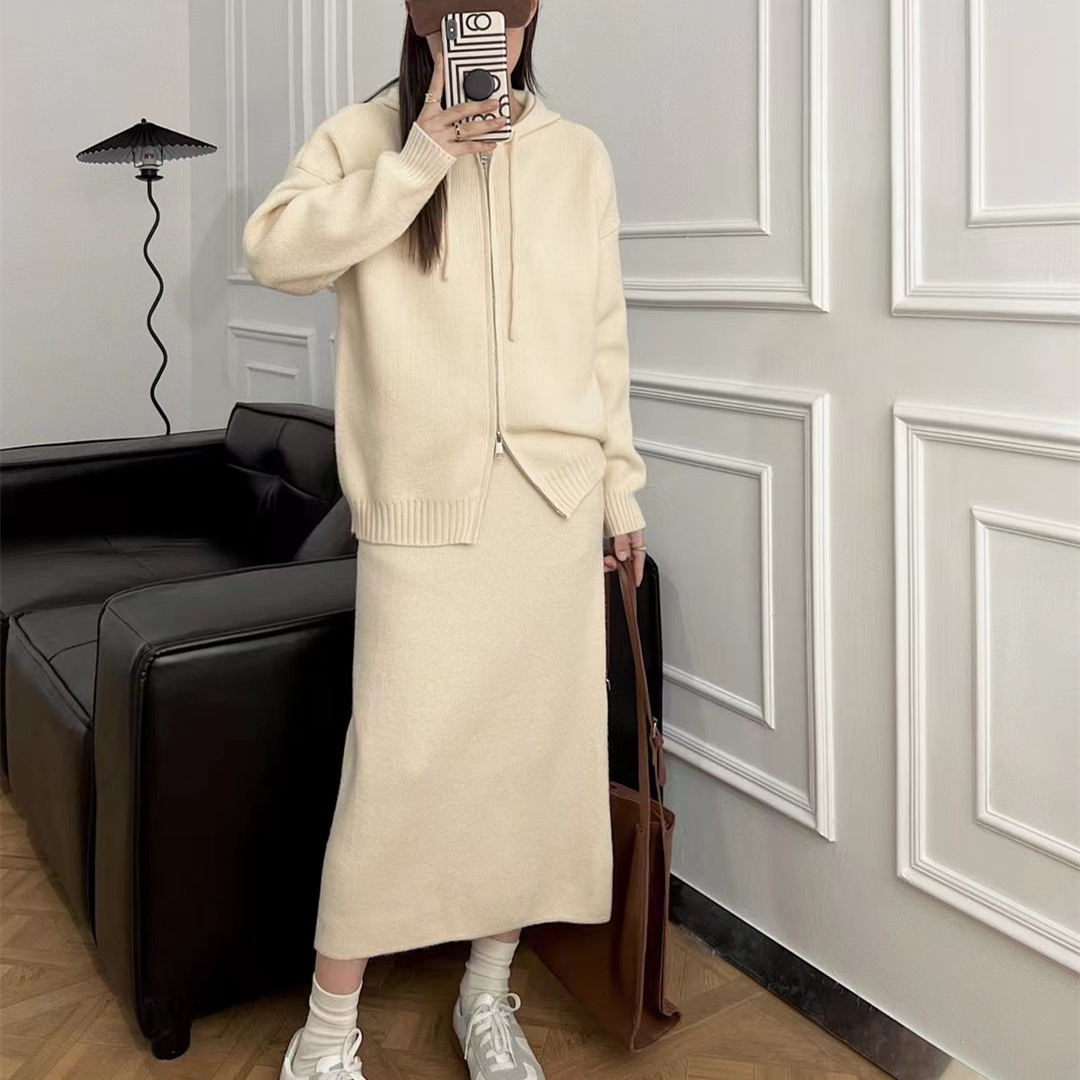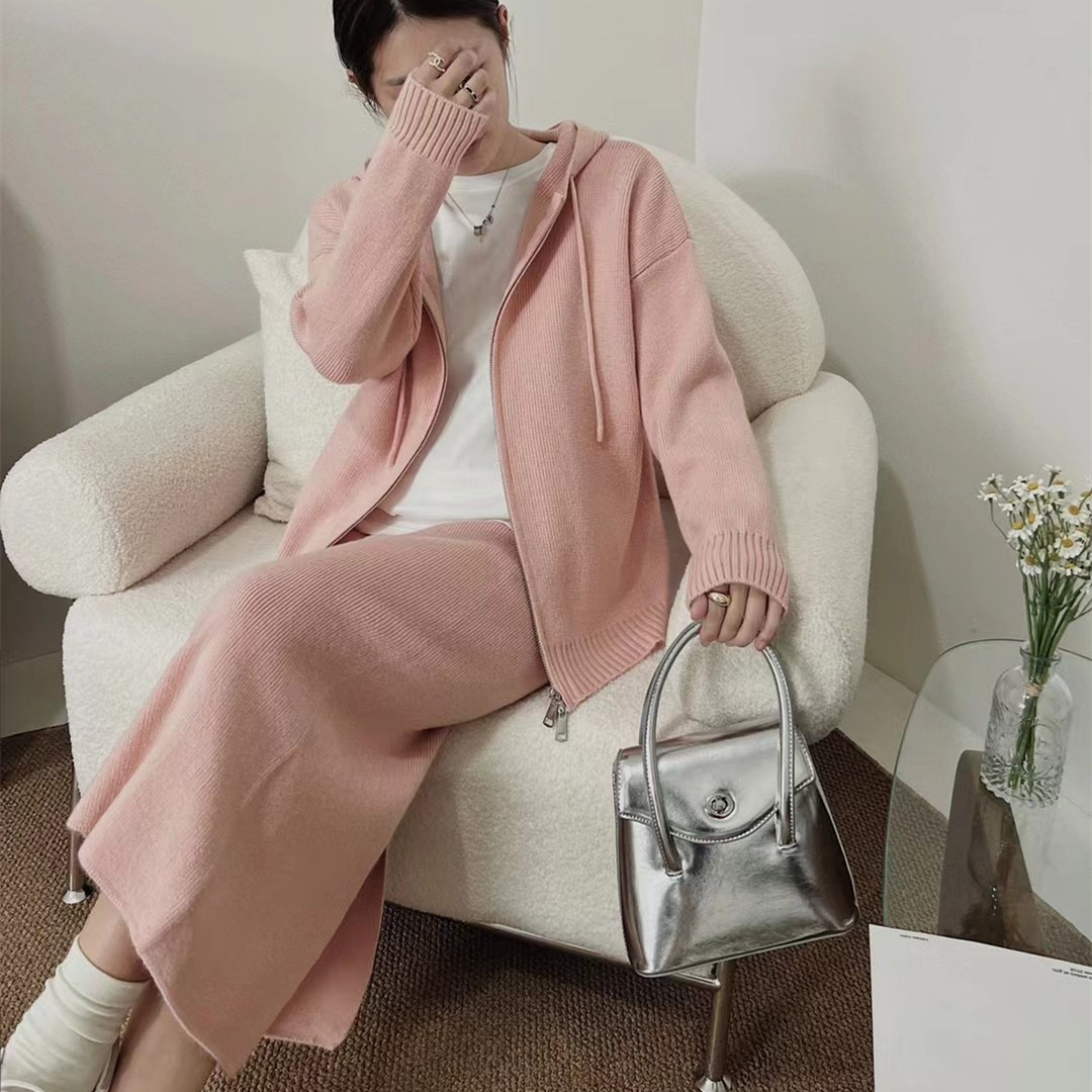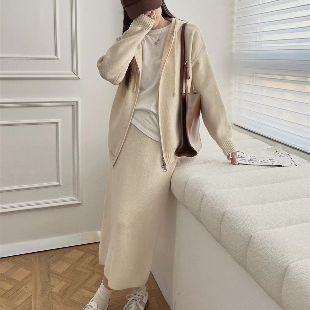 | nameOriginal | Hooded Zipper Knitted Cardigan Sweater suit Women Autumn and Winter New Korean Style Lazy Style Casual Skirt Two-piece Set |