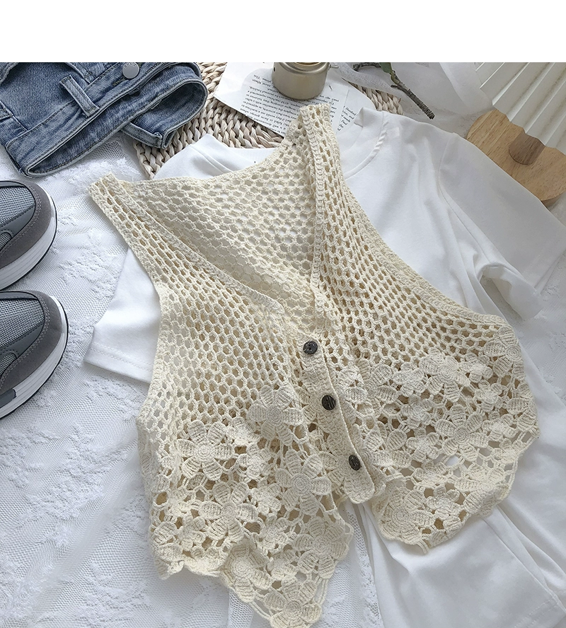 | nameOriginal | Hook pattern hollow V-neck single-breasted elegant knitted vest |