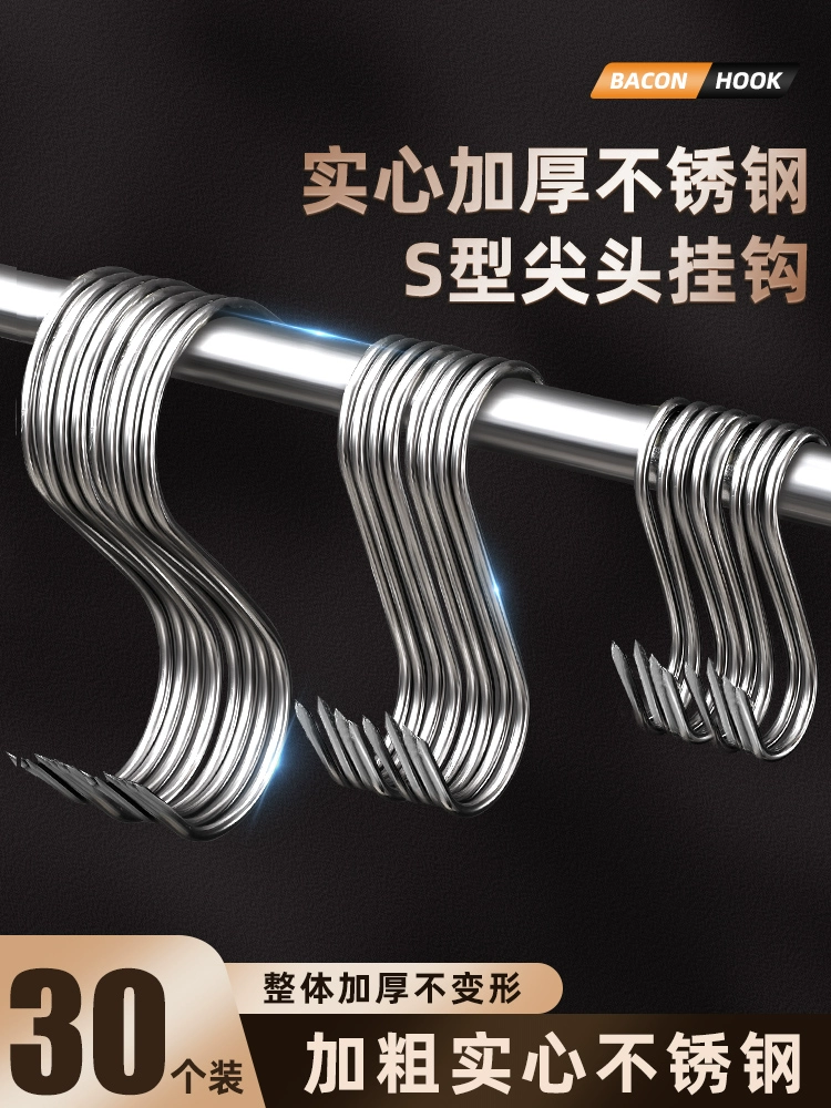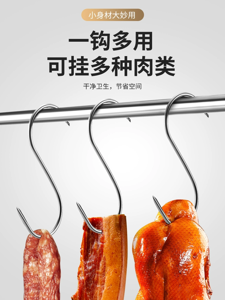 Hook stainless steel S -shaped hook strong load -bearing hook kitchen multi -functional sunburn sausage hanging bacon hook free punching