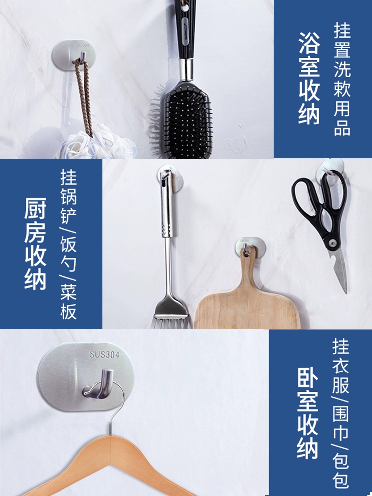 | nameOriginal | Hook strong adhesive stainless steel punch-free adhesive hook bathroom kitchen paste wall hanging load-bearing metal traceless nails |