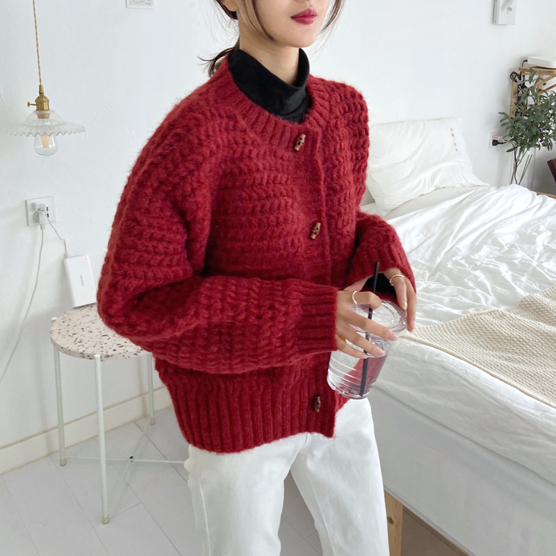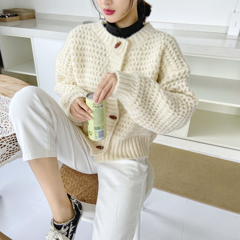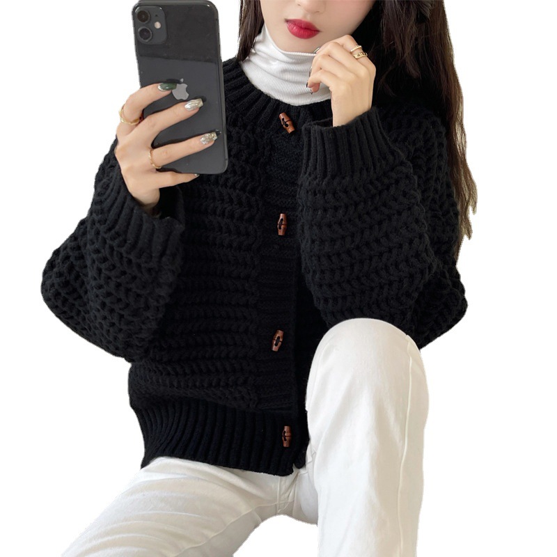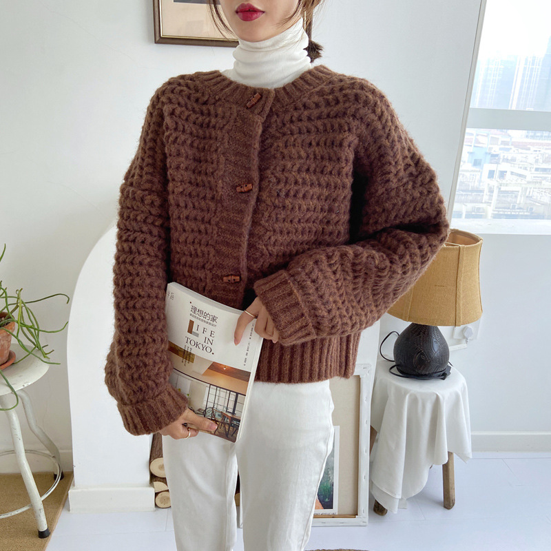 | nameOriginal | Horn buckle autumn and winter New sweater coat Korean style loose design Retro Japanese style knitted cardigan top for women |