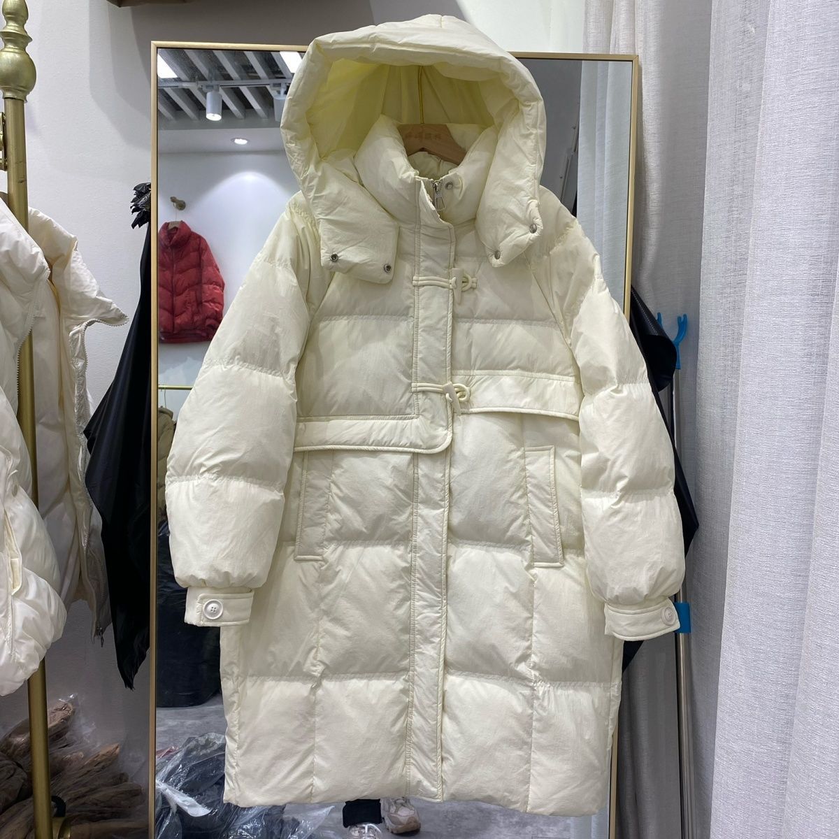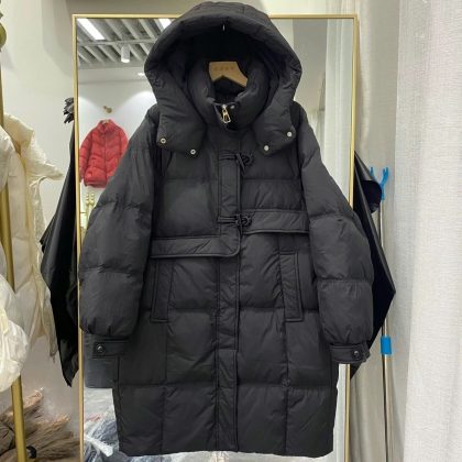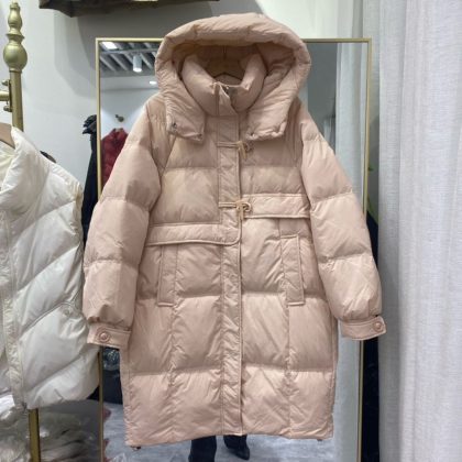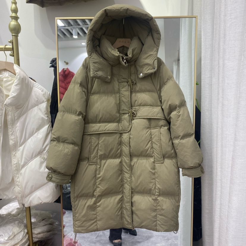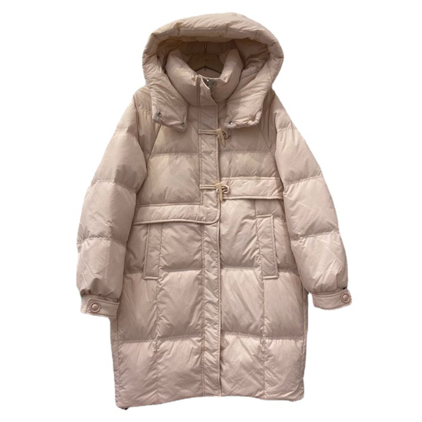 | nameOriginal | Horn buckle down jacket Women's Mid-length hooded white duck down warm down jacket thickened winter New Coat |