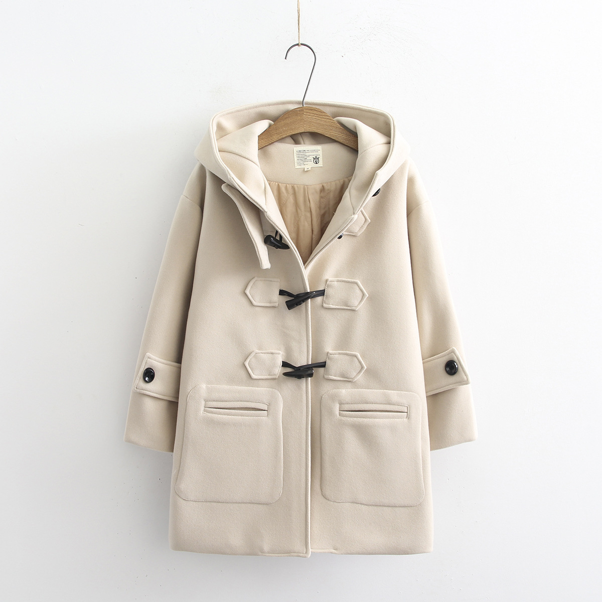 | nameOriginal | Horn Button Woolen Coat Women's Autumn and Winter 2021 Mid-length Wool Quilted Coat Hooded Student Petite |
