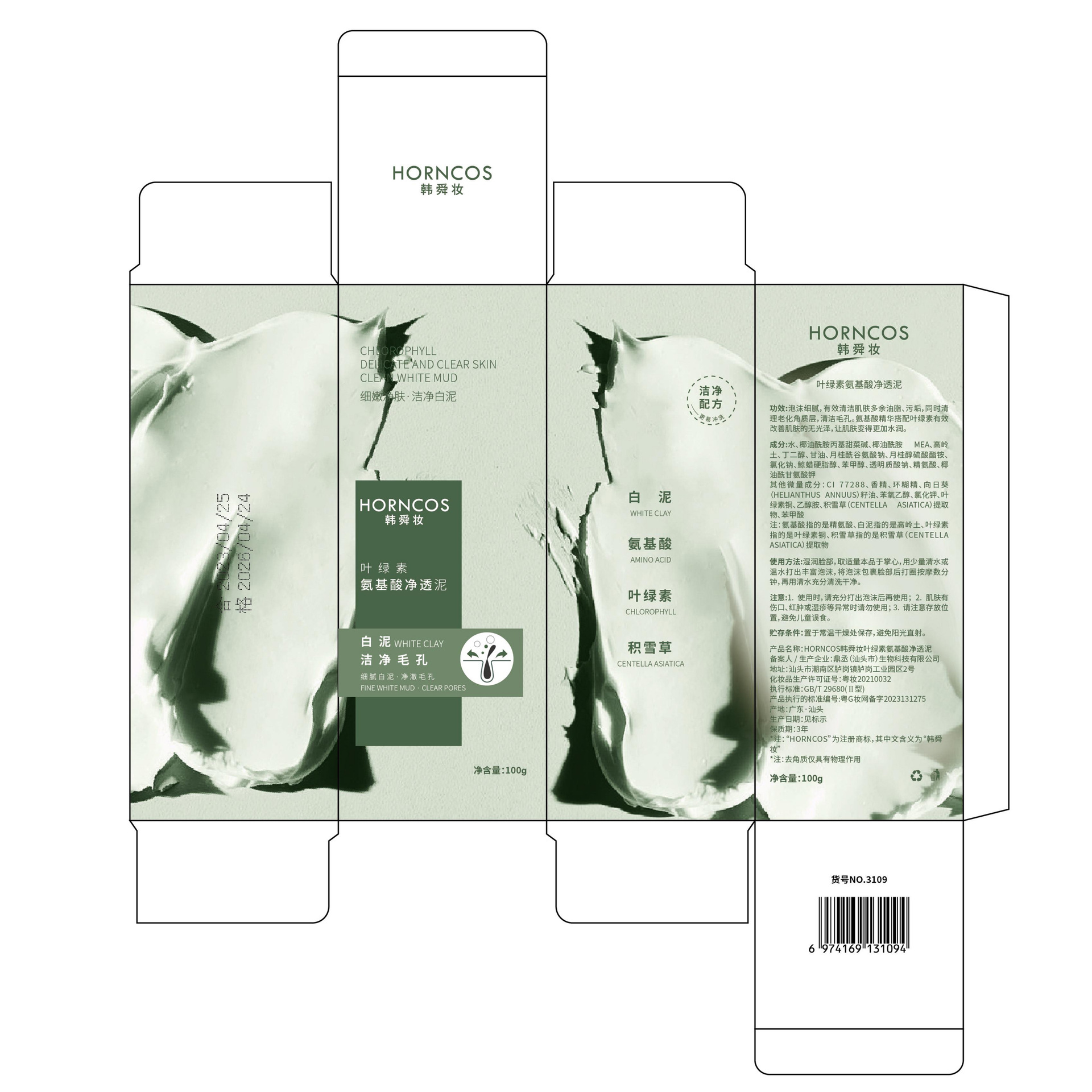| nameOriginal | HORNCOS/Han Shun Makeup Chlorophyll Amino Acid Facial Cleanser Cleansing Deep Cleansing Balance Blackhead Cleanser |