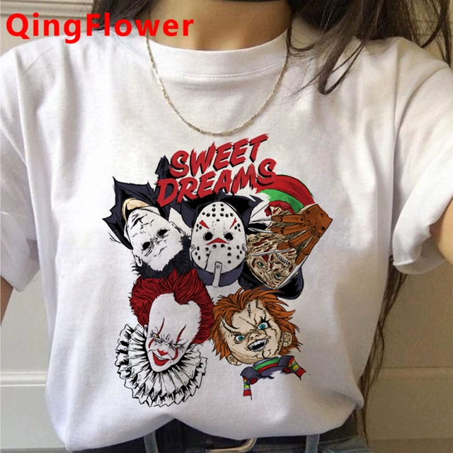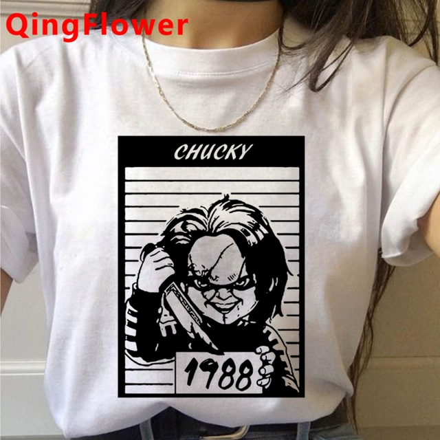 | nameOriginal | Horror Chucky t-shirt Halloween main horror story spoof strange large size round neck short-sleeved T-shirt for women |