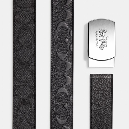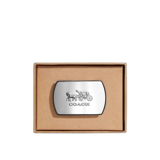 This metal accessory is designed to be paired with your preferred Coach belt, allowing you to mix and match to your heart’s content. It is compatible with 38mm-wide belts and interchangeable belt straps. The product comes in a stylish Coach gift box and bears the style number CE865.