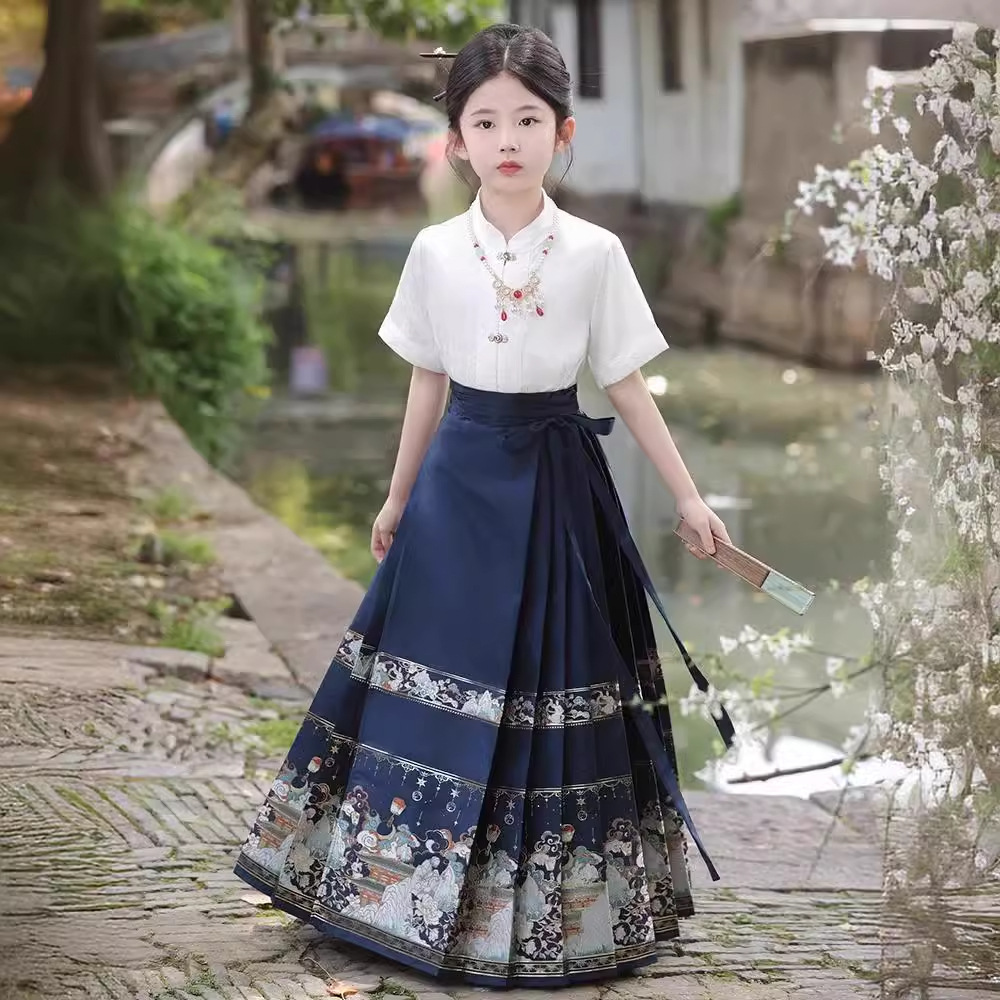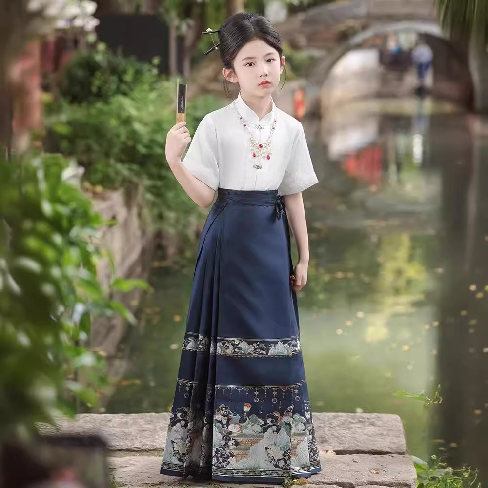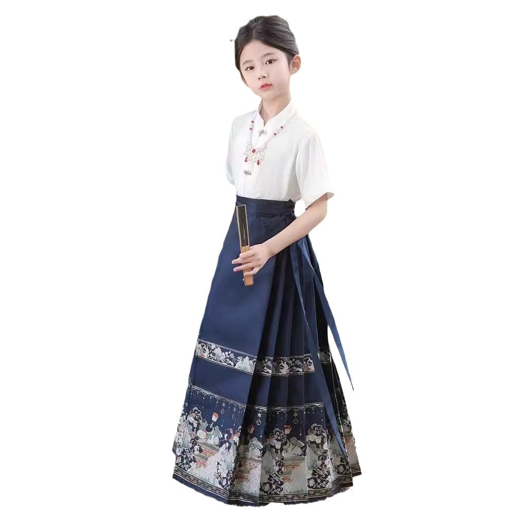 Horse Face Skirt for Girls suit 2024 New Children's Hanfu High-end National Style Little Girl's Antique Tang Suit Summer Short Sleeve