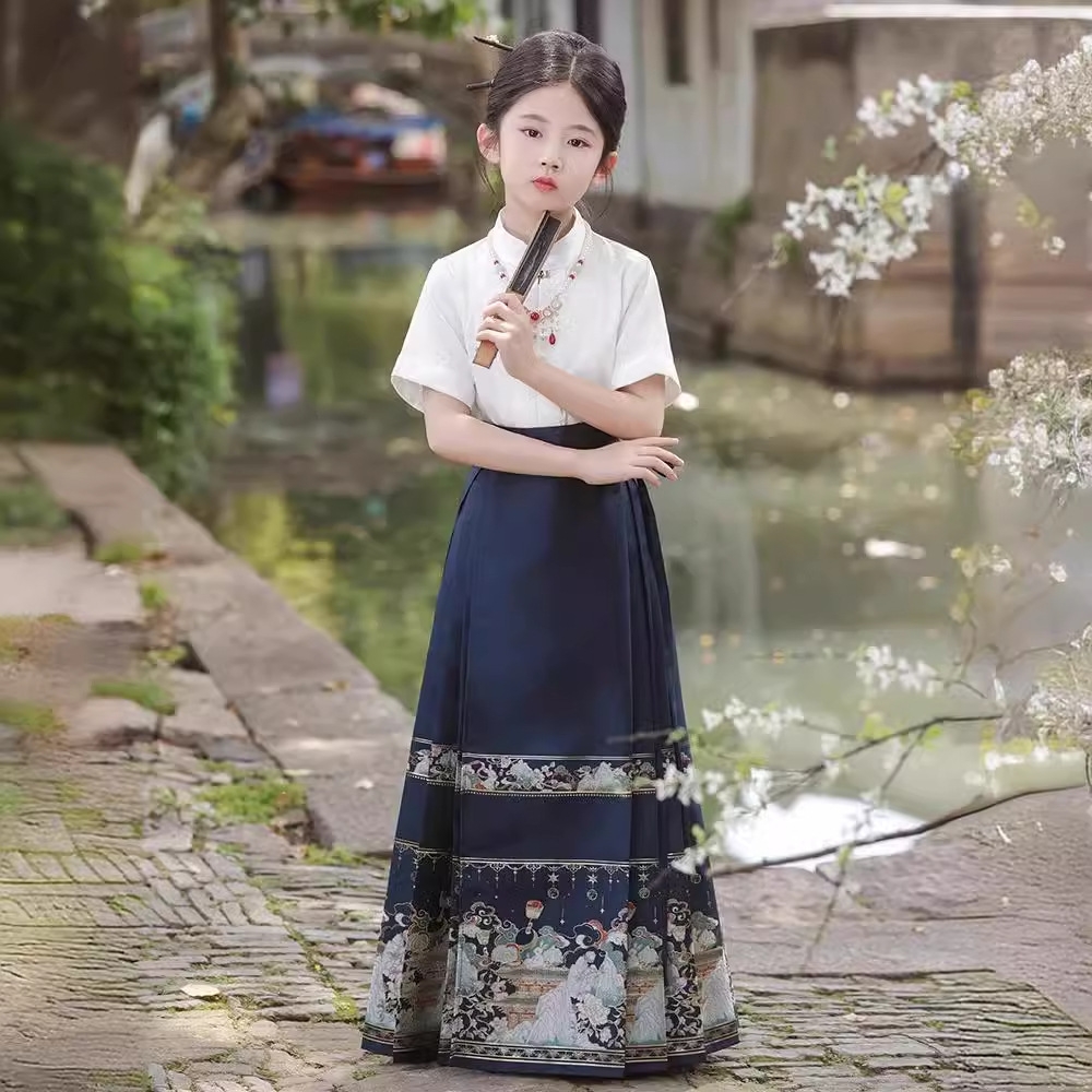 Horse Face Skirt for Girls suit 2024 New Children’s Hanfu High-end National Style Little Girl’s Antique Tang Suit Summer Short Sleeve