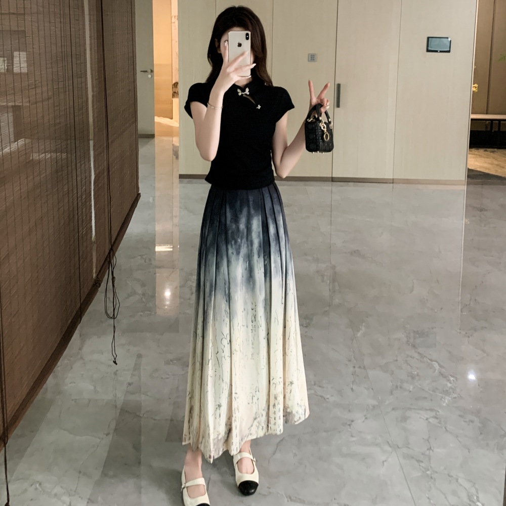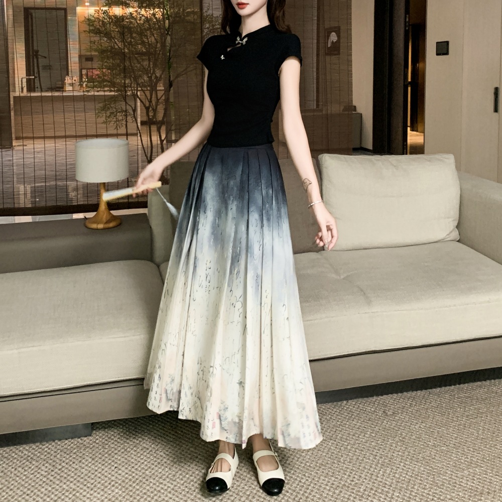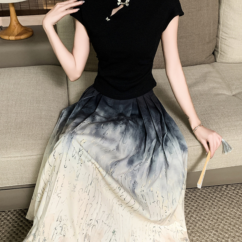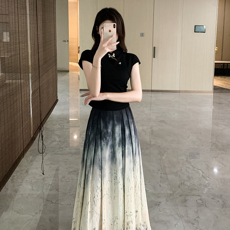 Horse face skirt suit women's high-end small 2024 summer classical style a set of daily new Chinese style ink painting