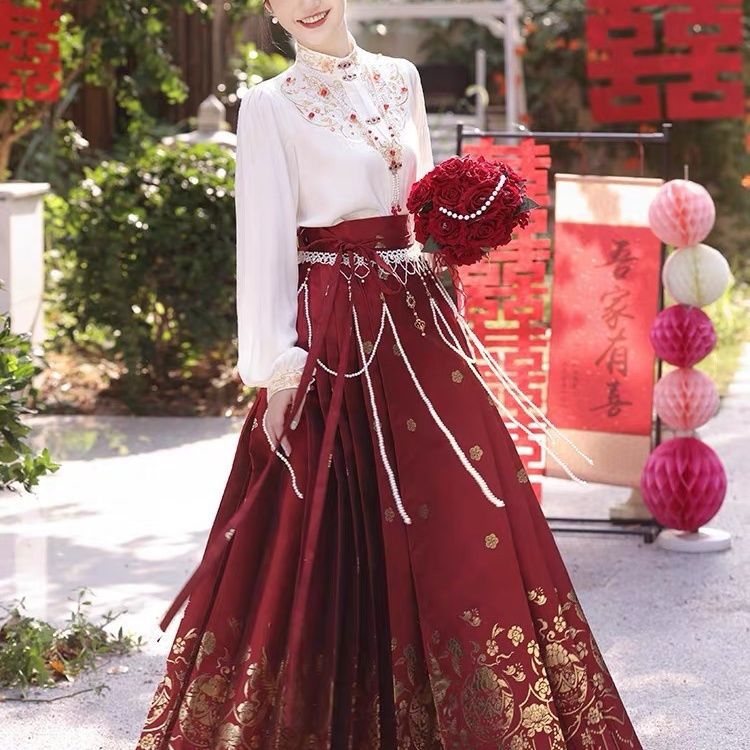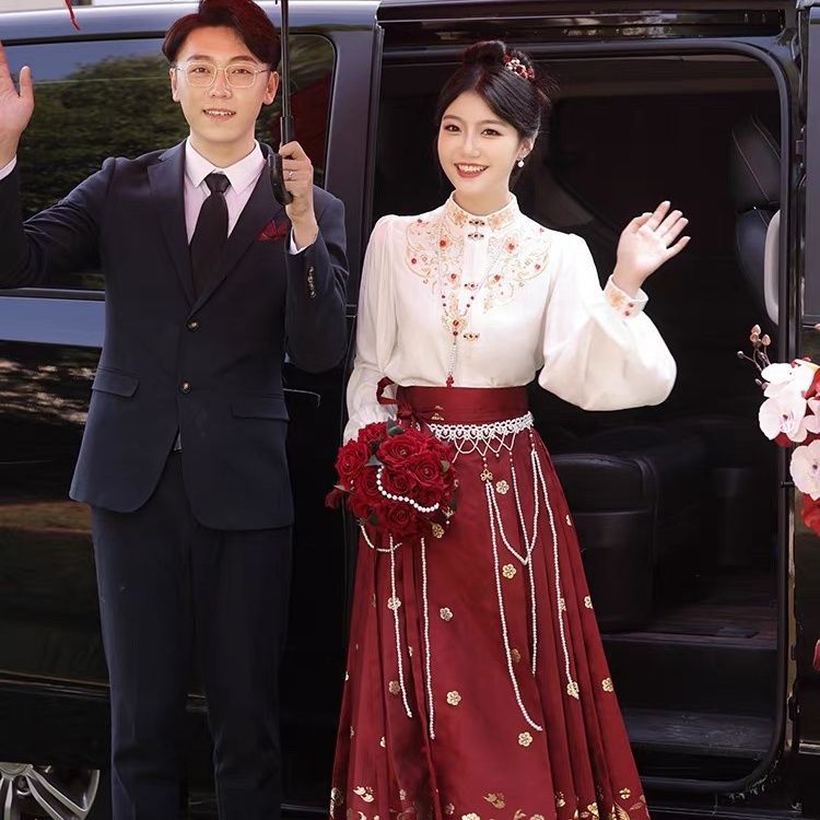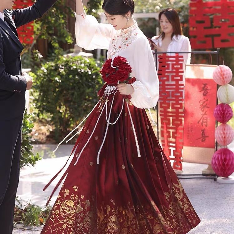 Horse Face Skirt Toasting Dress Bride 2023 New Women's Suit Red Engagement Dress Guofeng Hanfu Two-piece Set Back to the Door