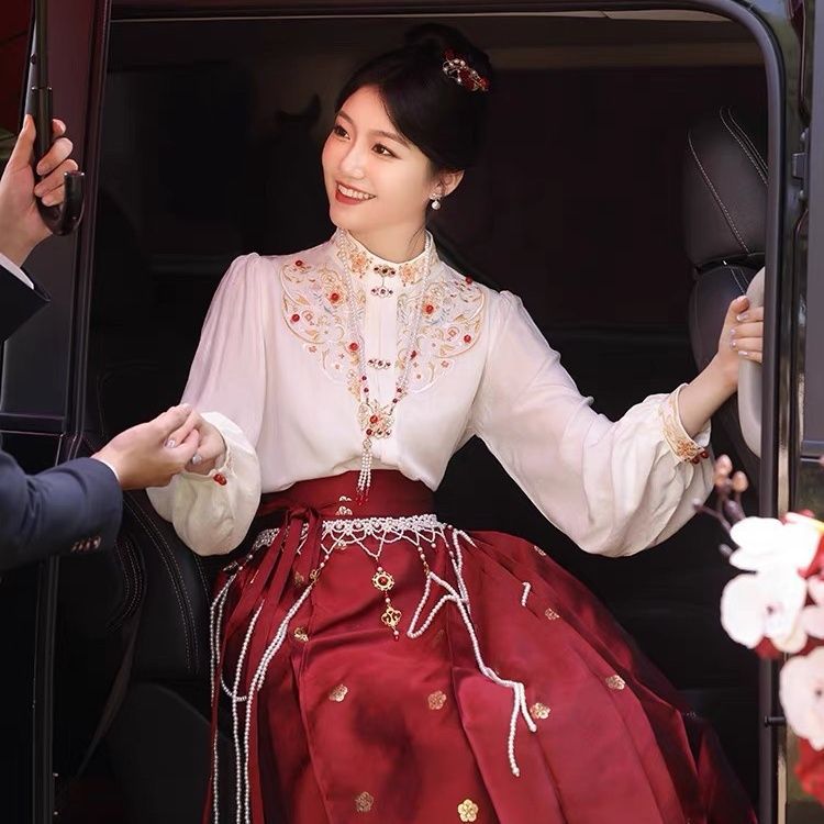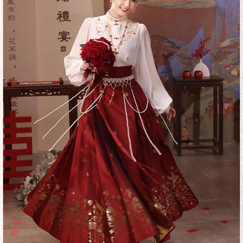 Horse Face Skirt Toasting Dress Bride 2023 New Women’s Suit Red Engagement Dress Guofeng Hanfu Two-piece Set Back to the Door