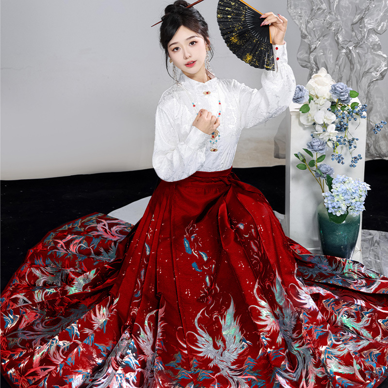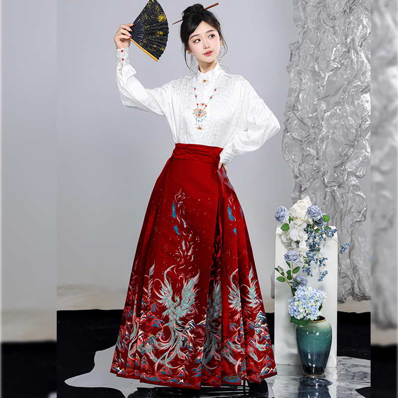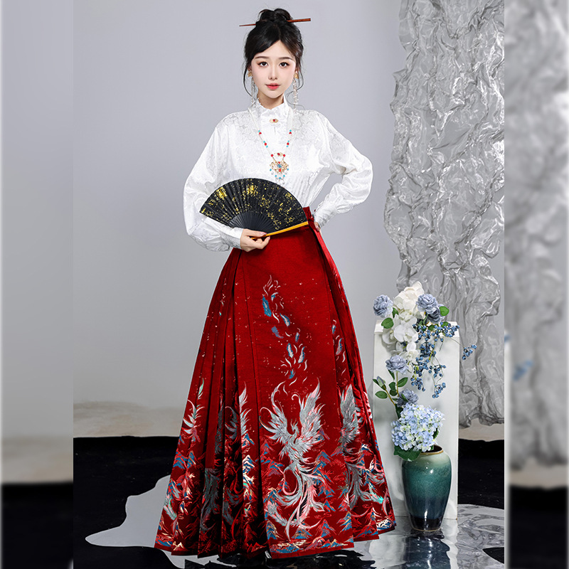 Horse-faced Skirt Spring and Summer Hanfu Women’s Red Yarn-dyed Gold New Chinese Style Toast National Style Top Daily Wear suit