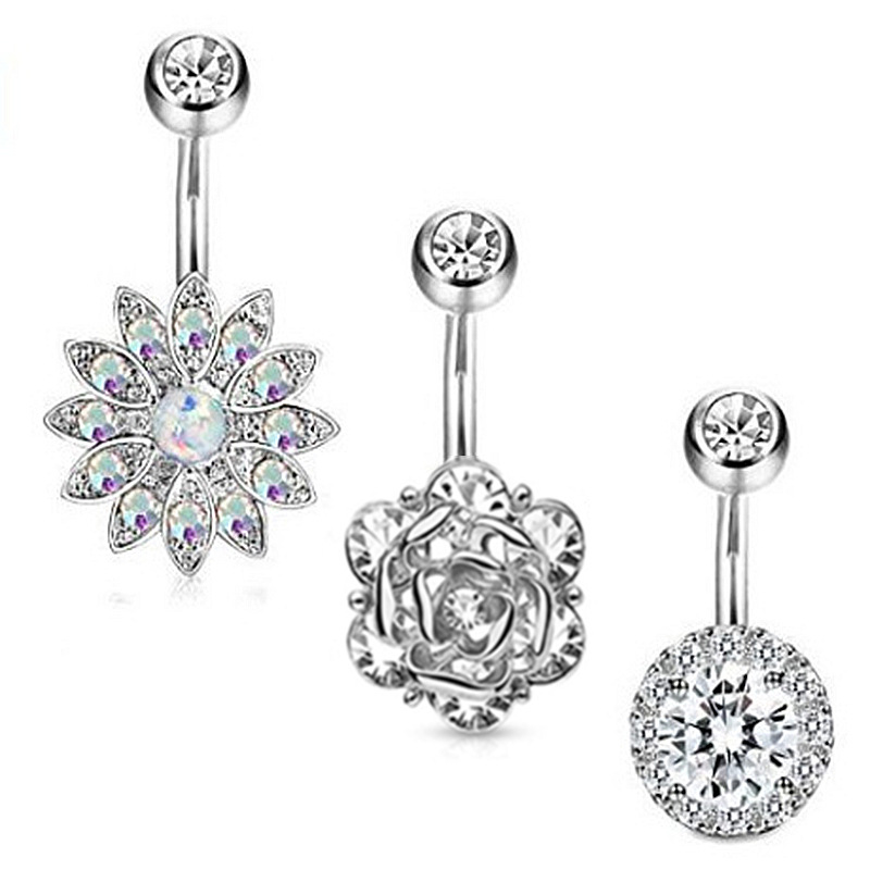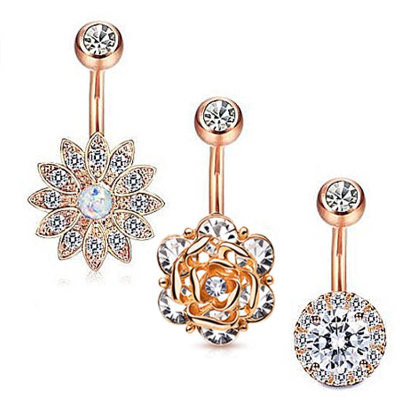 Hot 3-piece ebay Amazon wish exquisite Opal navel nail diamond navel ring combination