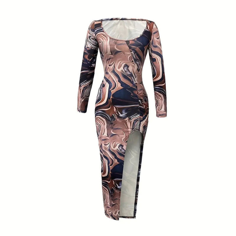 | nameOriginal | Hot cross-border supply 2024 new European and American style low-cut printed slim-fit long sleeve dress sexy split hip skirt |