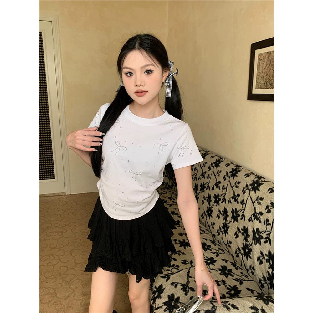 | nameOriginal | Hot diamond short-sleeved summer slim round neck top with bow tie |