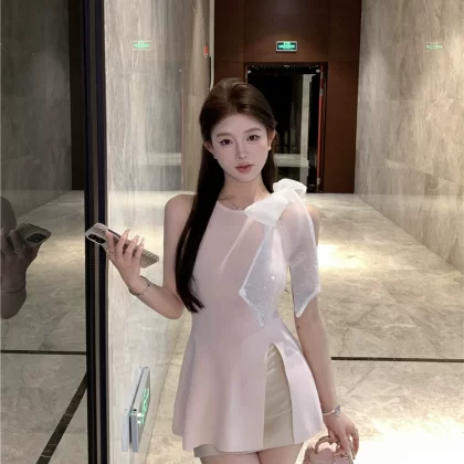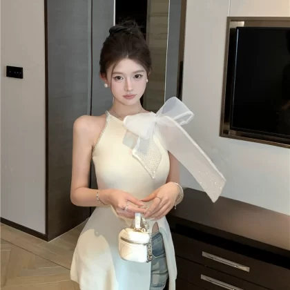 | nameOriginal | Hot diamond women's summer slit sleeveless slim bow |