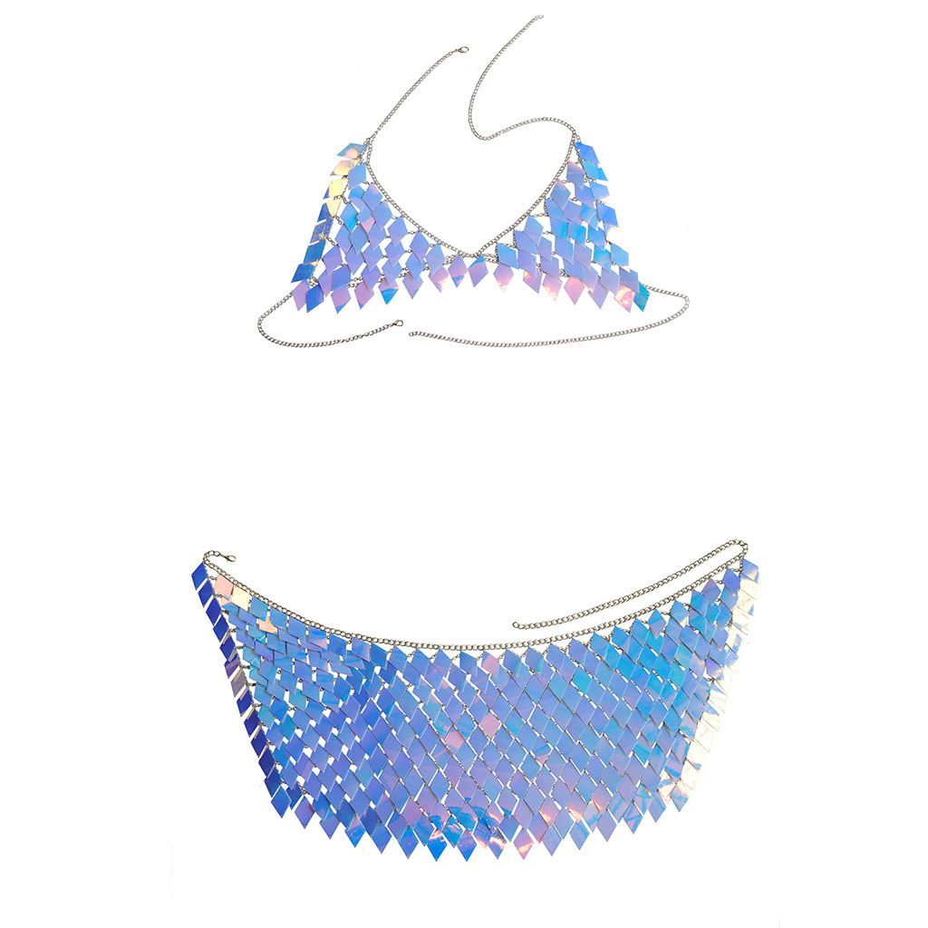 | nameOriginal | HOT European and American Cross-border New Accessories Shiny Multi-layer Sequin Bra + Waist Chain Body Chain Set Sequin Body |