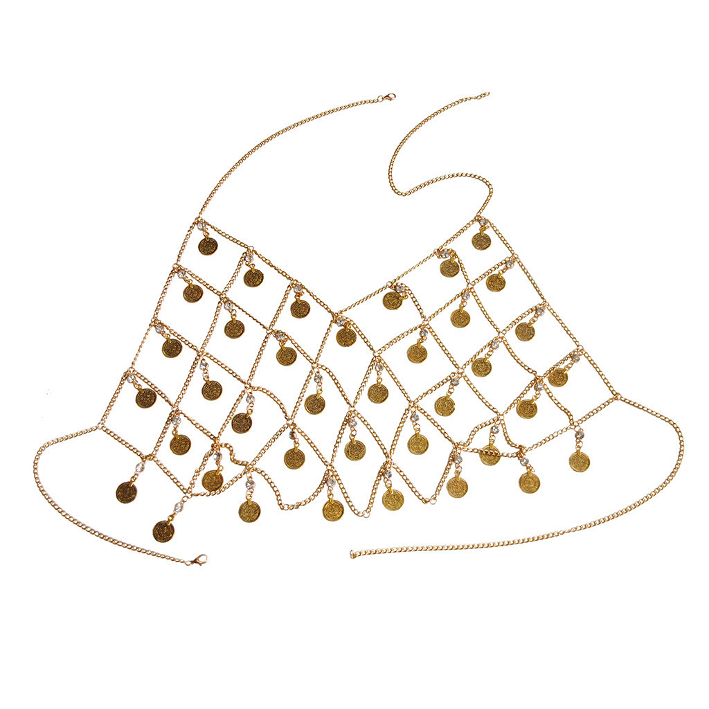 | nameOriginal | HOT European and American Hot Selling Jewelry New Cross-border Personality Exaggerated Punk Style Alloy Chest Chain Coin Tassel Body Chain |