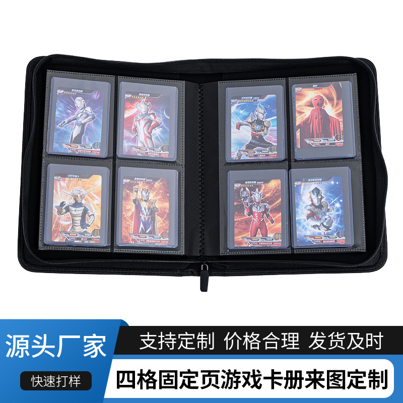 Hot Game King Four-grid Solid Color Card Book Leather Zipper Card Book Large Capacity Portable Card Bag