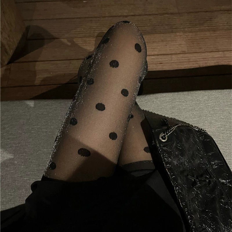 Hot girl black silk silver silk sparkling pearl stockings for women in spring and autumn thin polka dots sexy pure black pantyhose