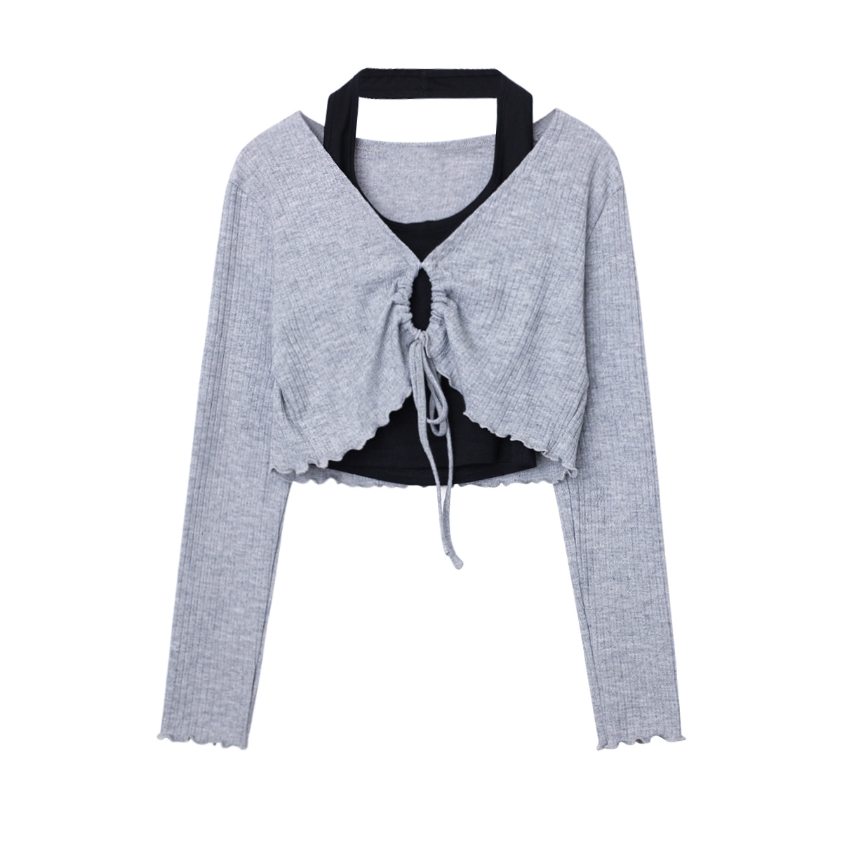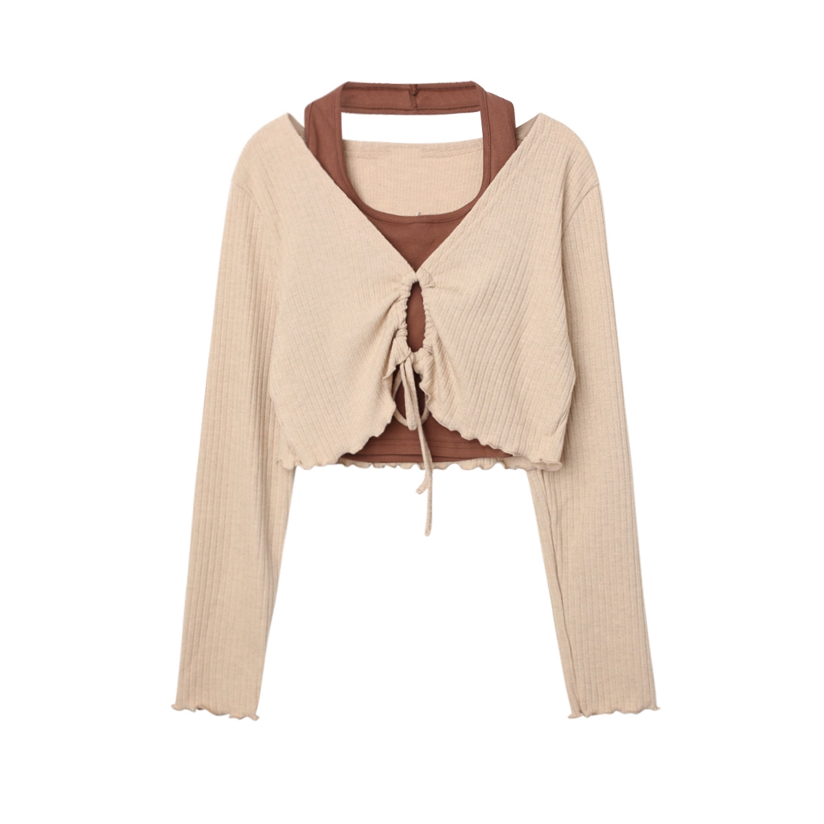 Hot girl bm short T-shirt niche design two-piece halterneck vest long-sleeved top 2023 spring new style for women