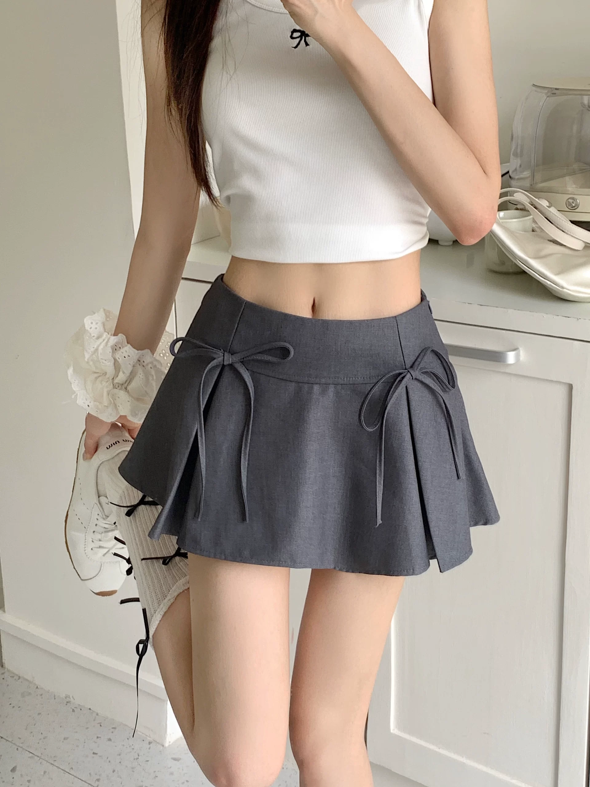 | nameOriginal | Hot girl design bow tie skirt for women summer 2024 new style stylish gray anti-exposure A-line skirt |