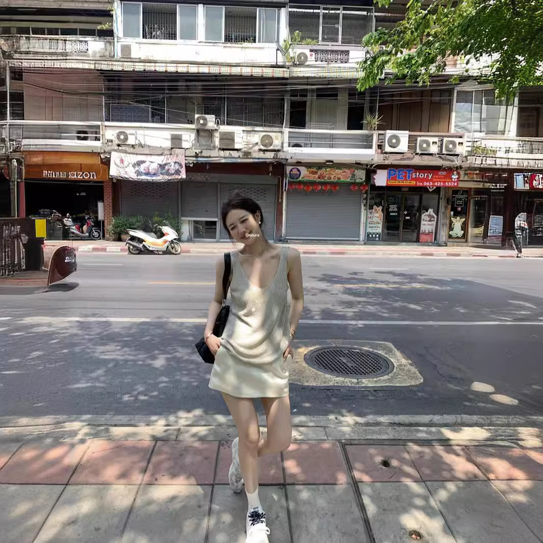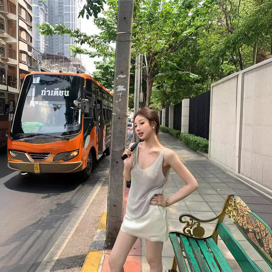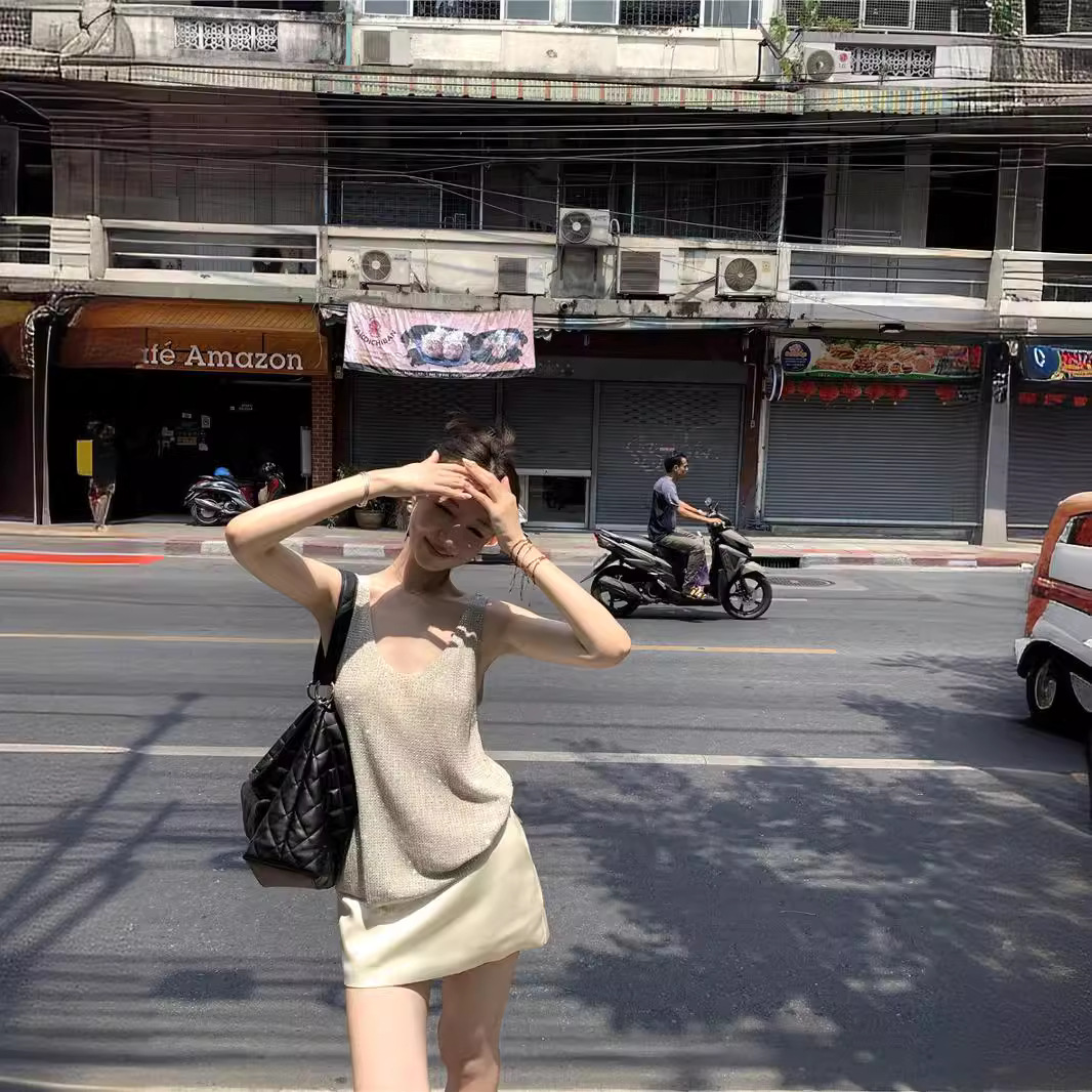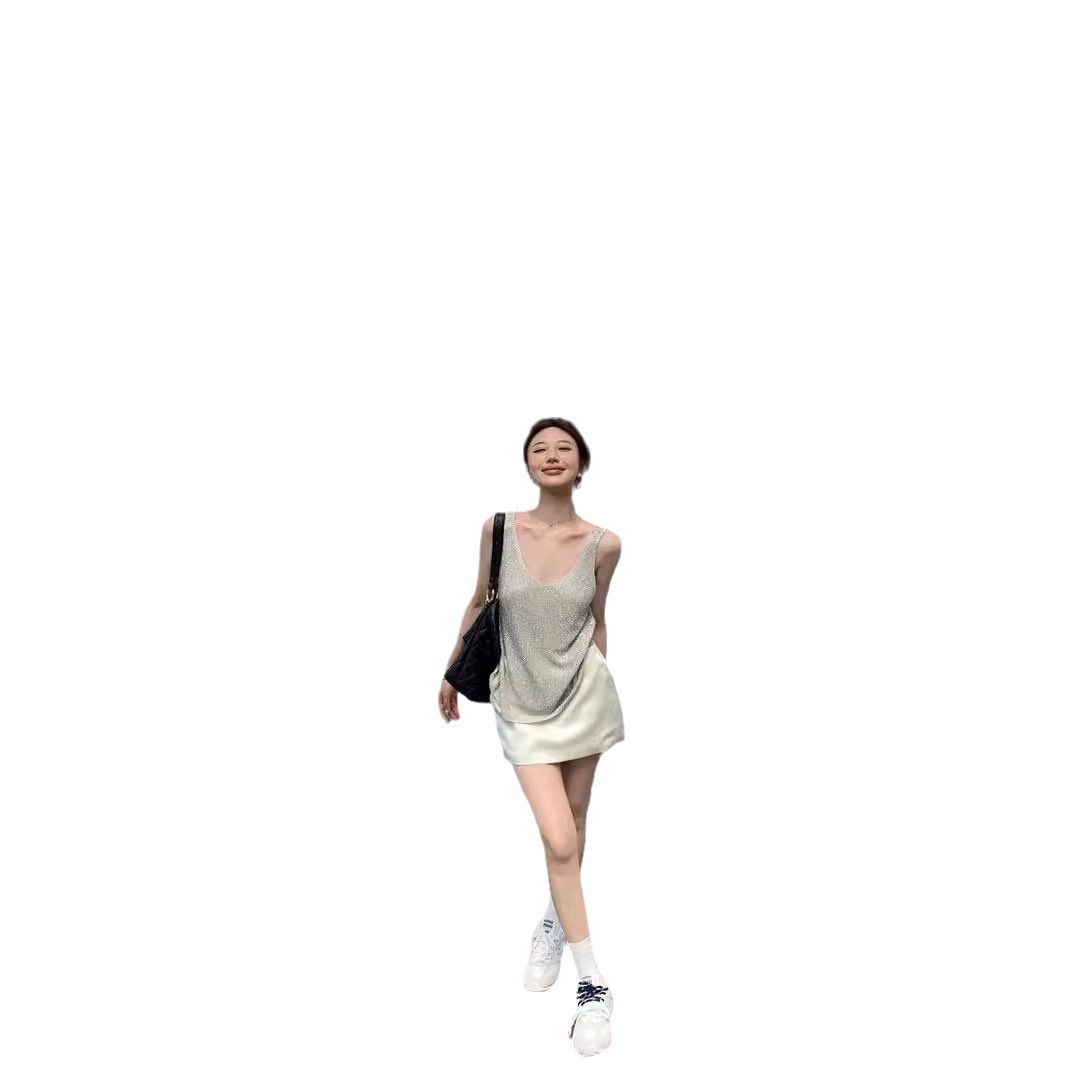 | nameOriginal | Hot Girl Fashion suit Elegant Hot Rhinestone Knitted Vest Women's Summer New A- line Skirt Short Skirt Two-piece Set |