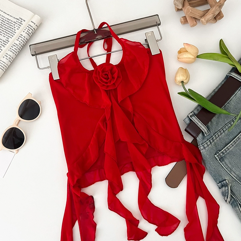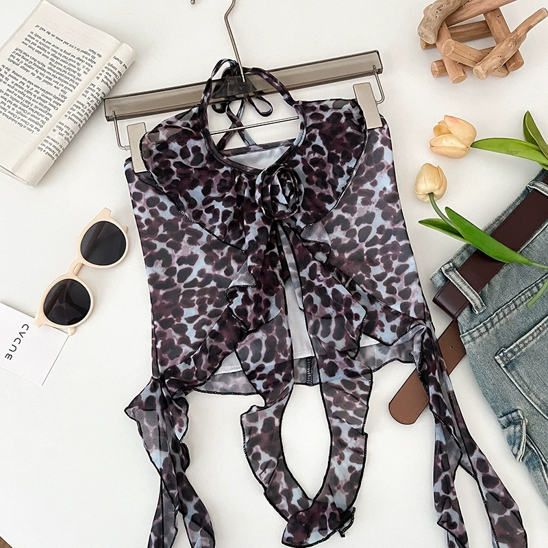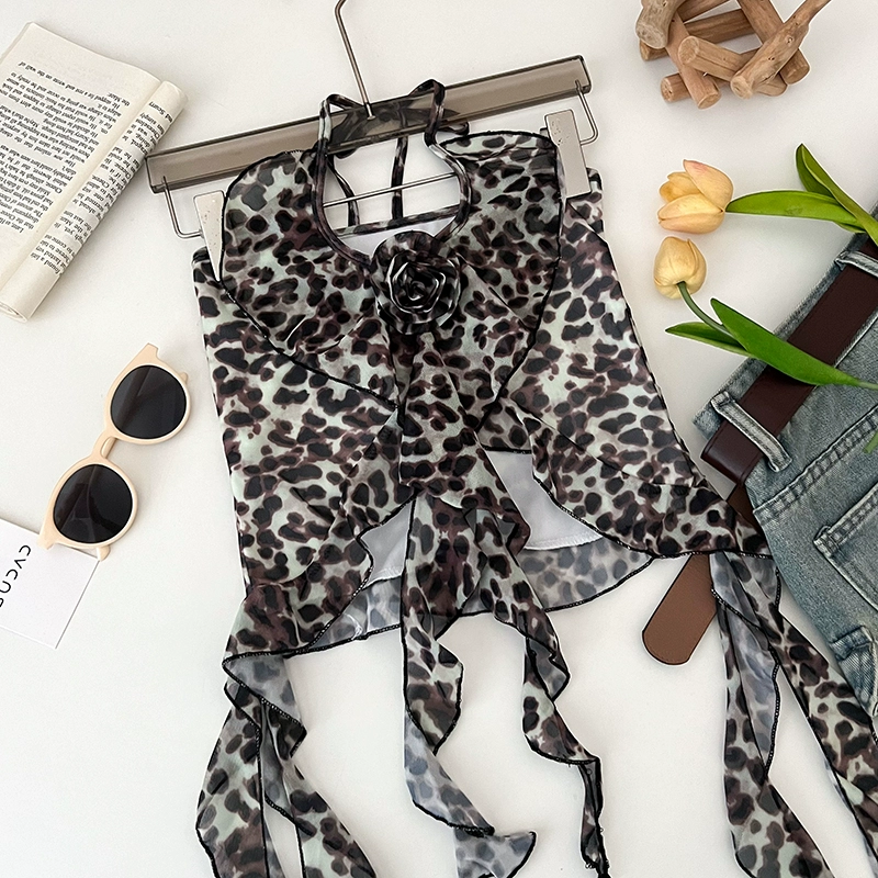 | nameOriginal | Hot girl fashion versatile three-dimensional flower leopard print halterneck irregular slimming slim short camisole top for women |