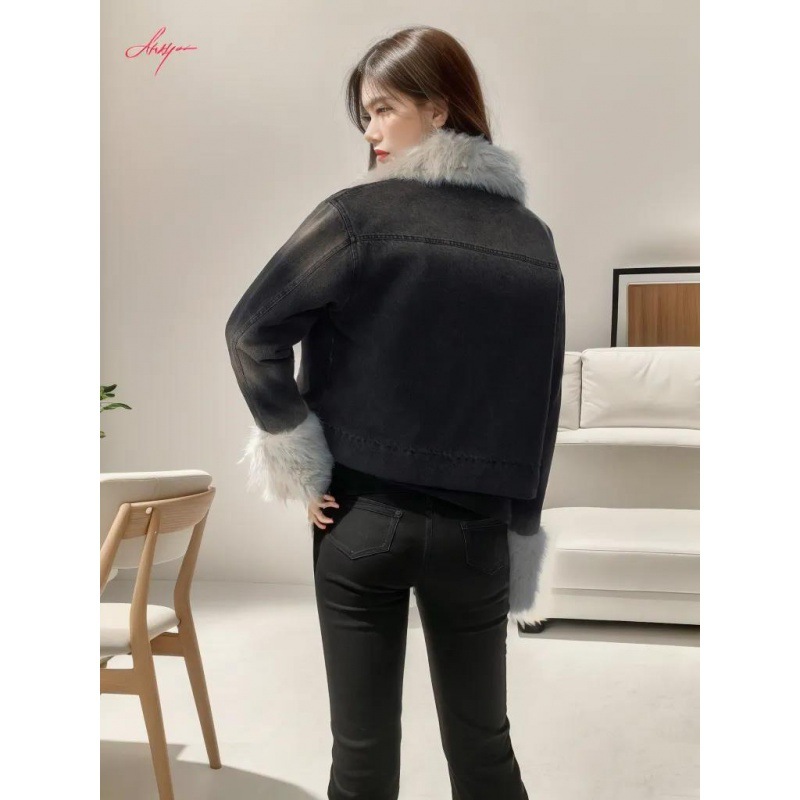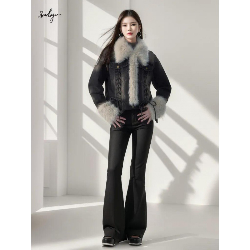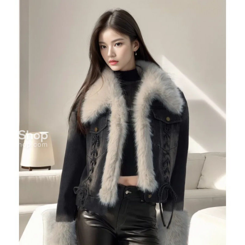 | nameOriginal | Hot girl fur stitching lace-up washed distressed Denim coat feel autumn and winter cotton-padded coat |
