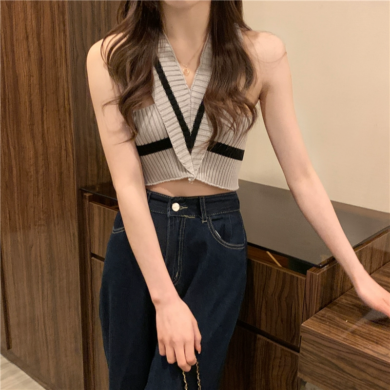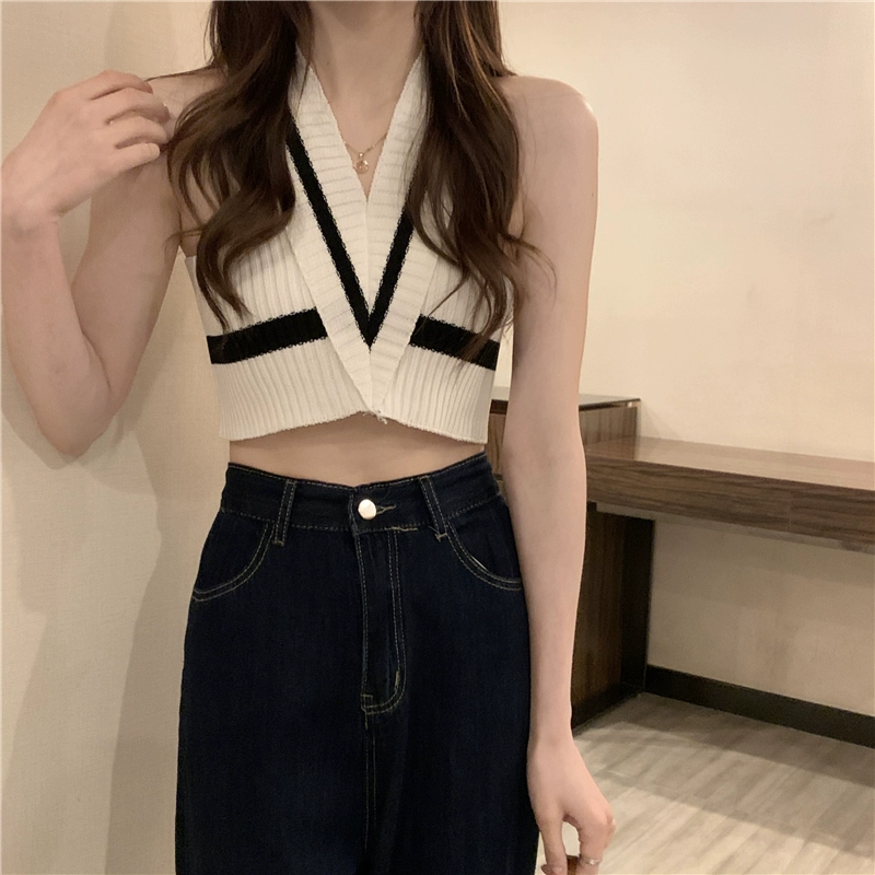 Hot girl niche design sleeveless V-neck top with halter neck