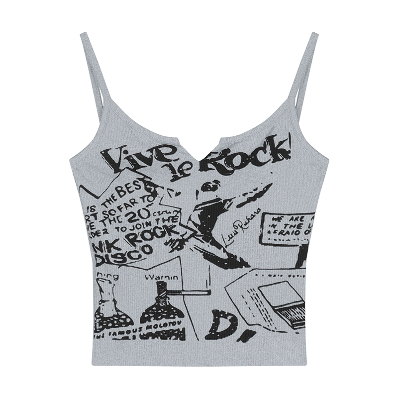 | nameOriginal | Hot girl print gray slim fit sleeveless camisole |