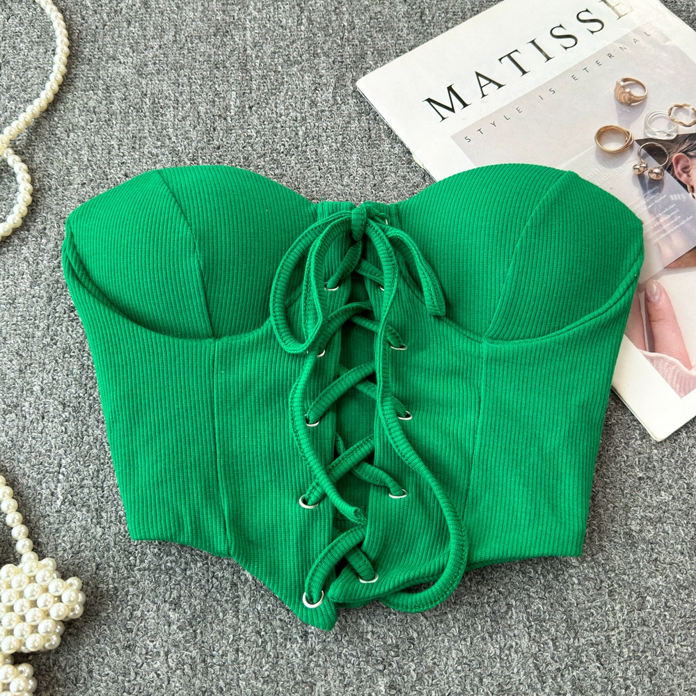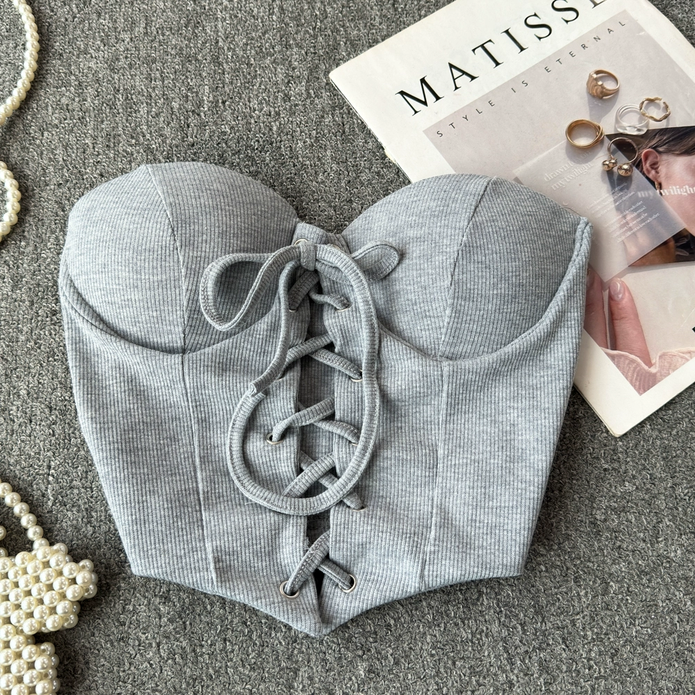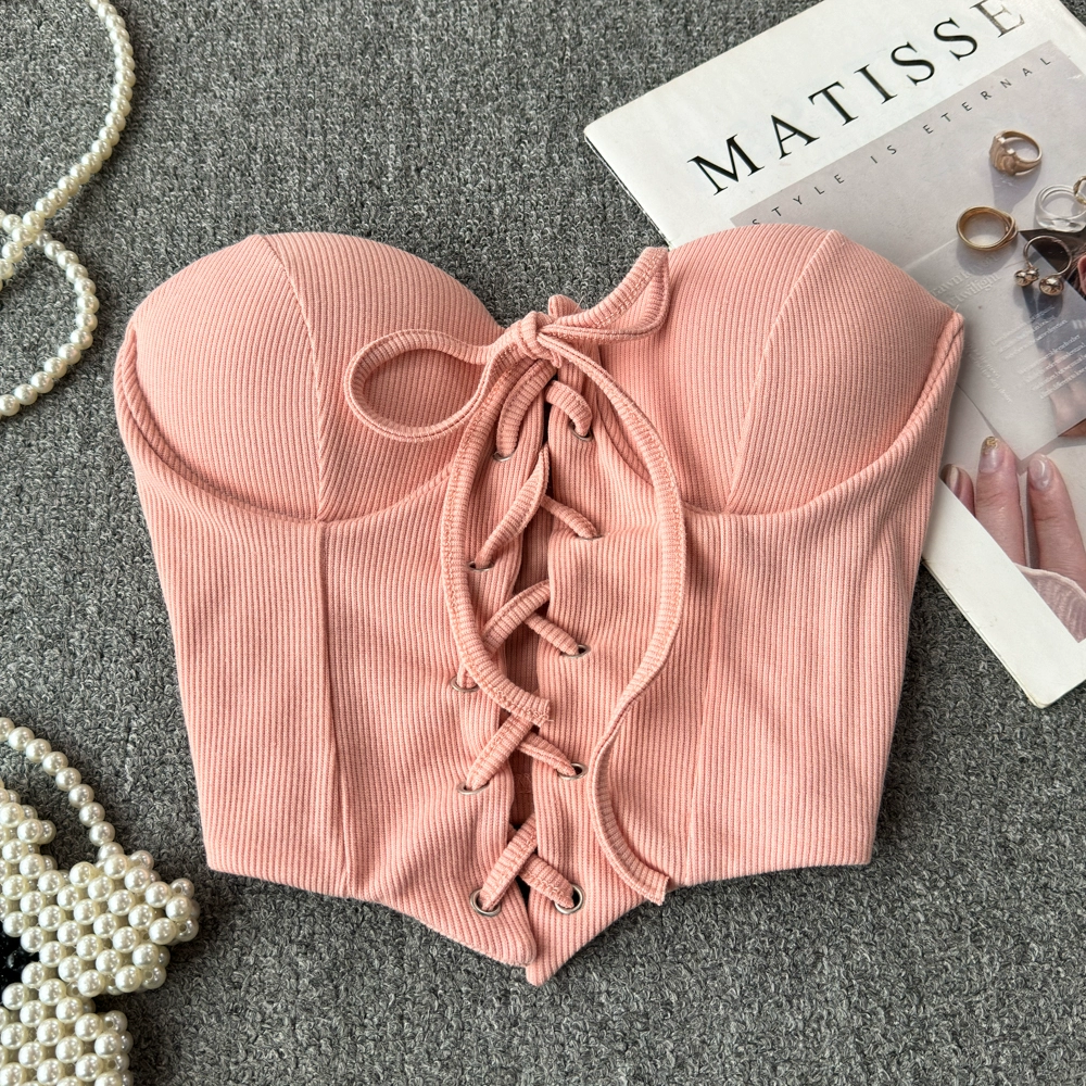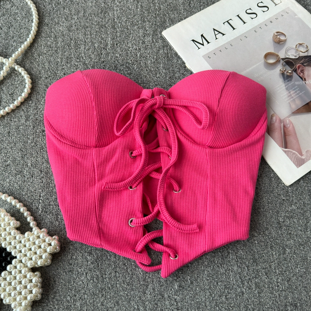 Hot girl retro one-shoulder tube top women's summer Hong Kong style sexy lace-up waist slimming top worn outside to wrap chest