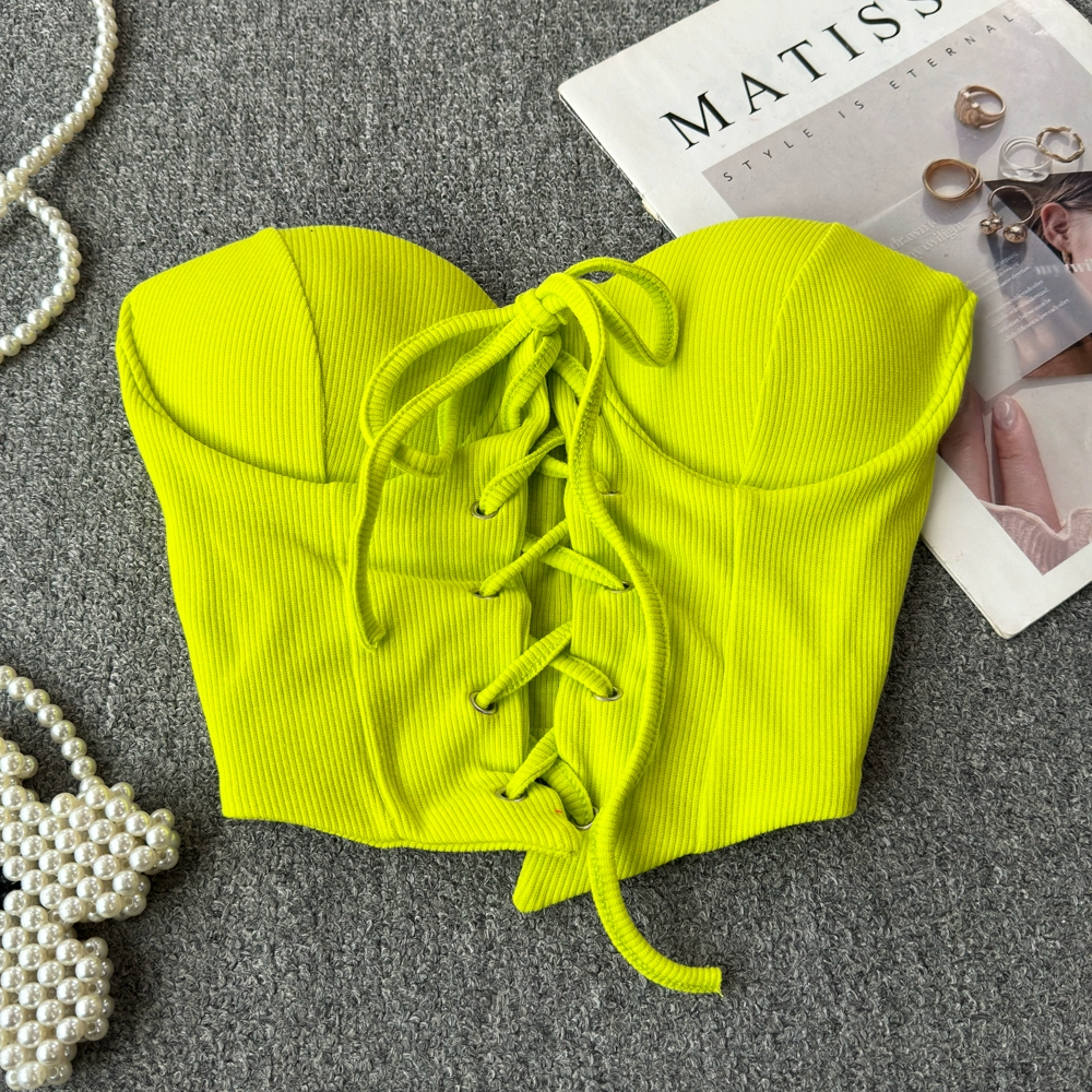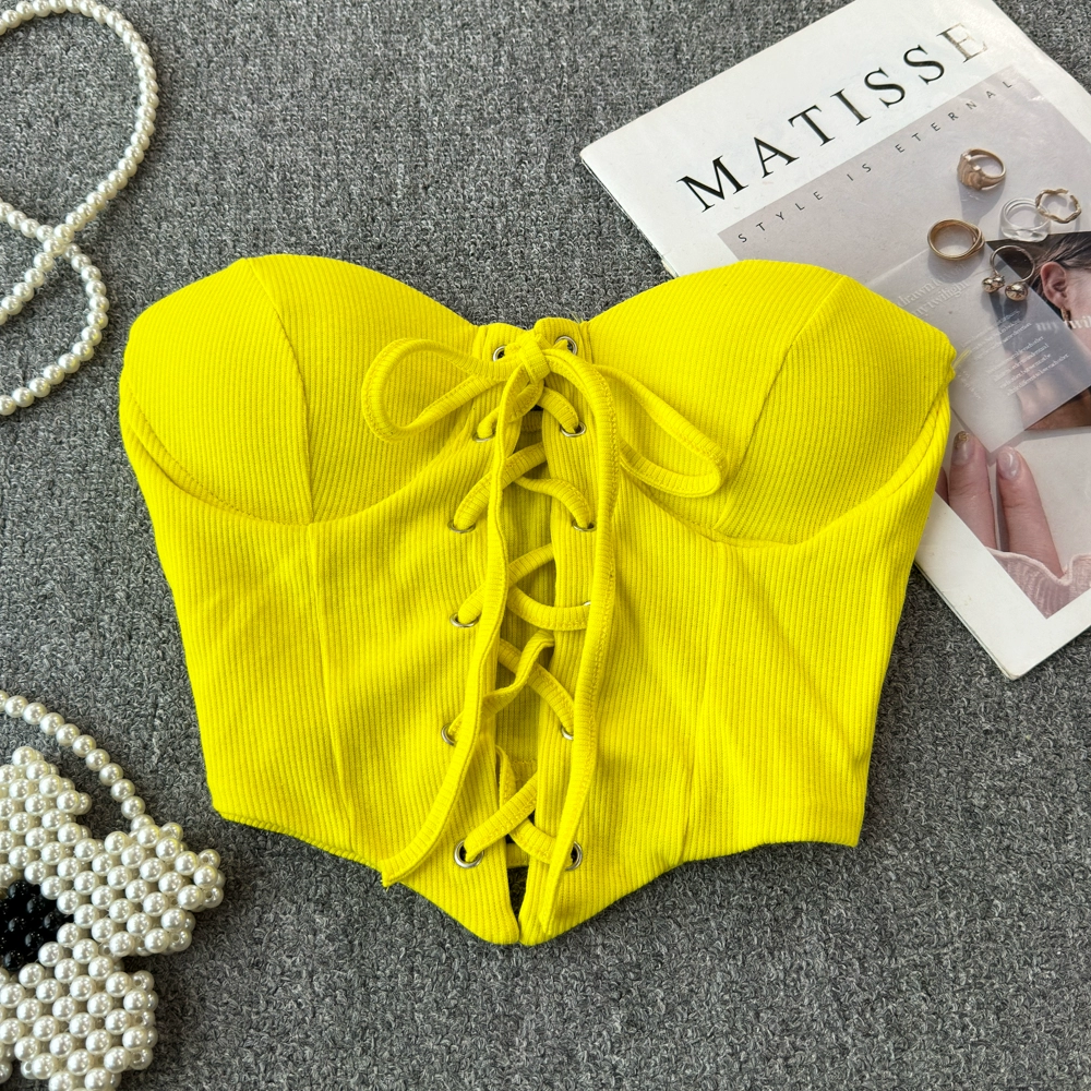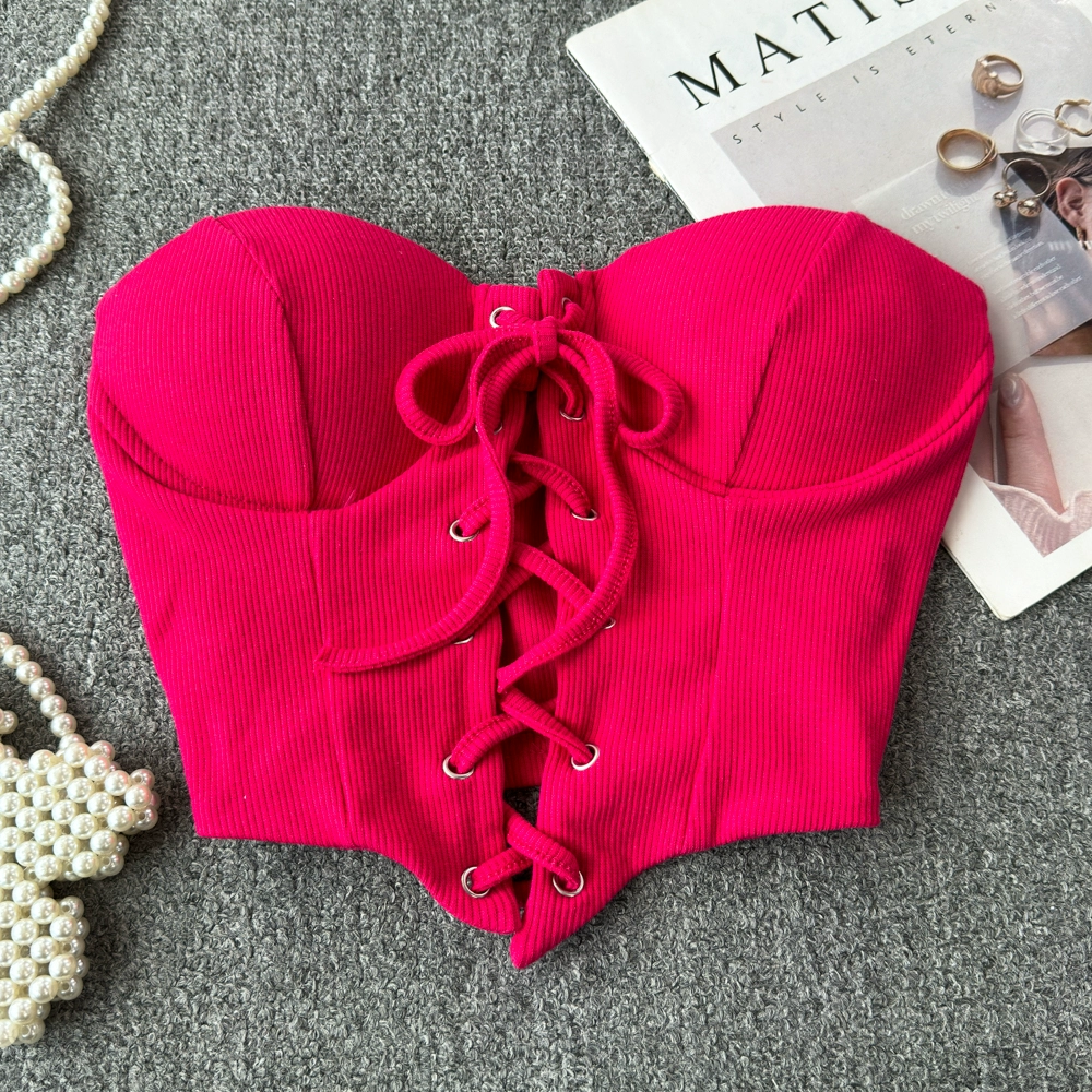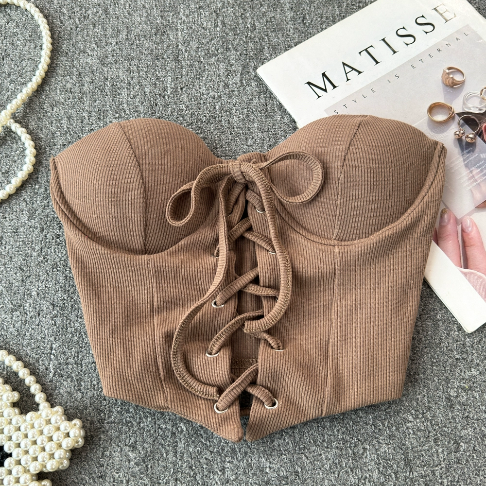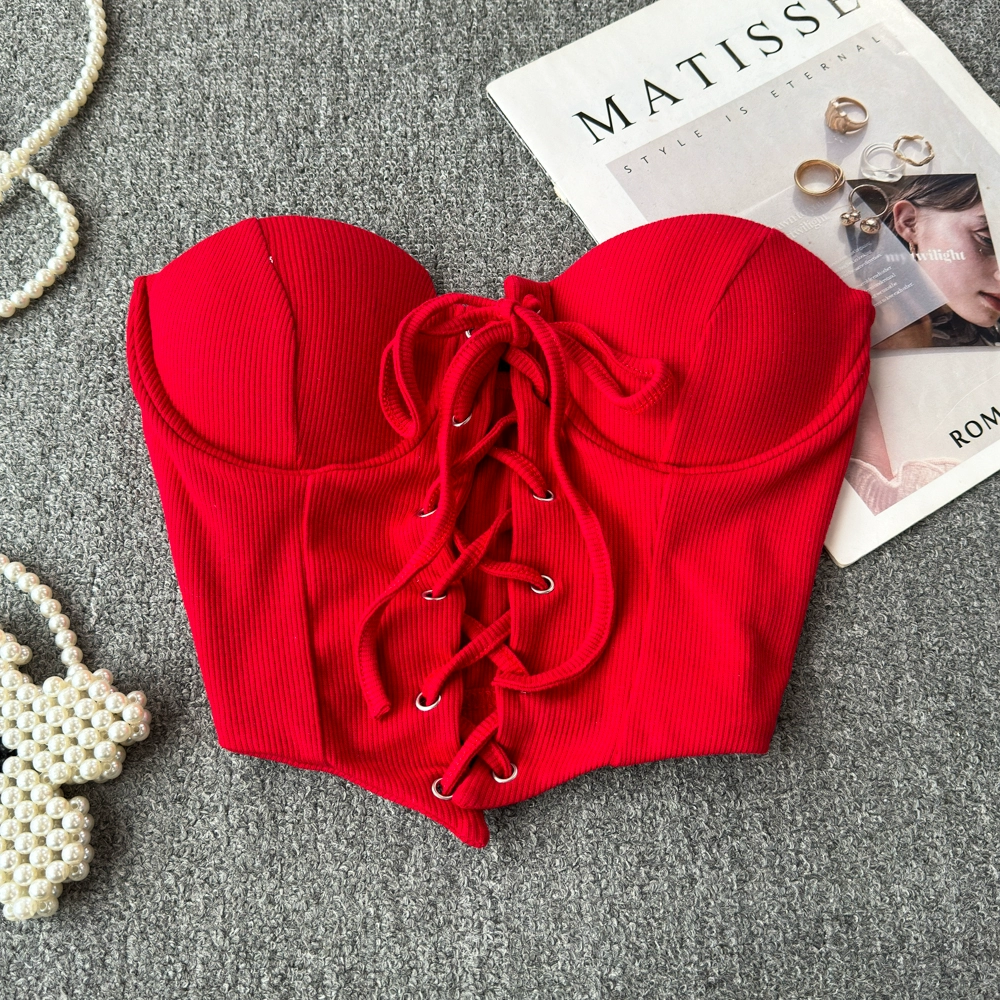 Hot girl retro one-shoulder tube top women's summer Hong Kong style sexy lace-up waist slimming top worn outside to wrap chest