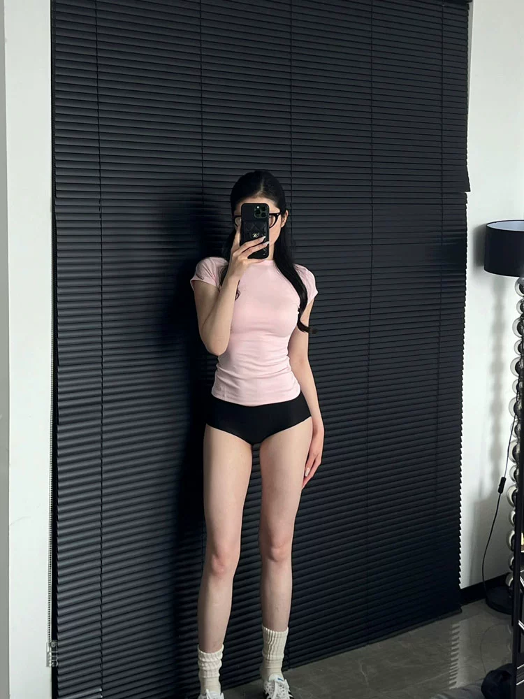 | nameOriginal | Hot Girl Right Shoulder Pink Slim Fit Waist Short Sleeve T-Shirt |