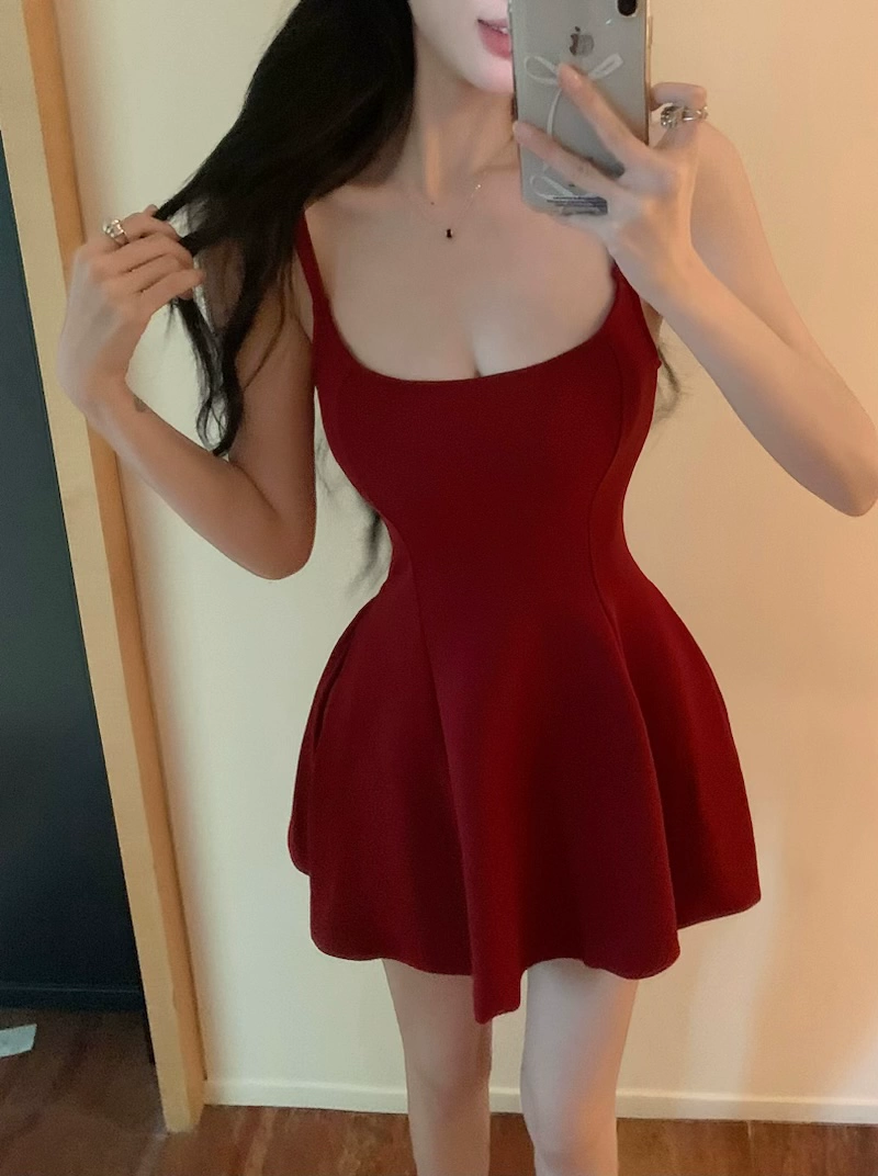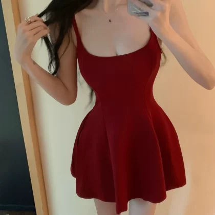 | nameOriginal | Hot girl sexy red suspender dress female summer new French slim slim waist low-cut A-line skirt |