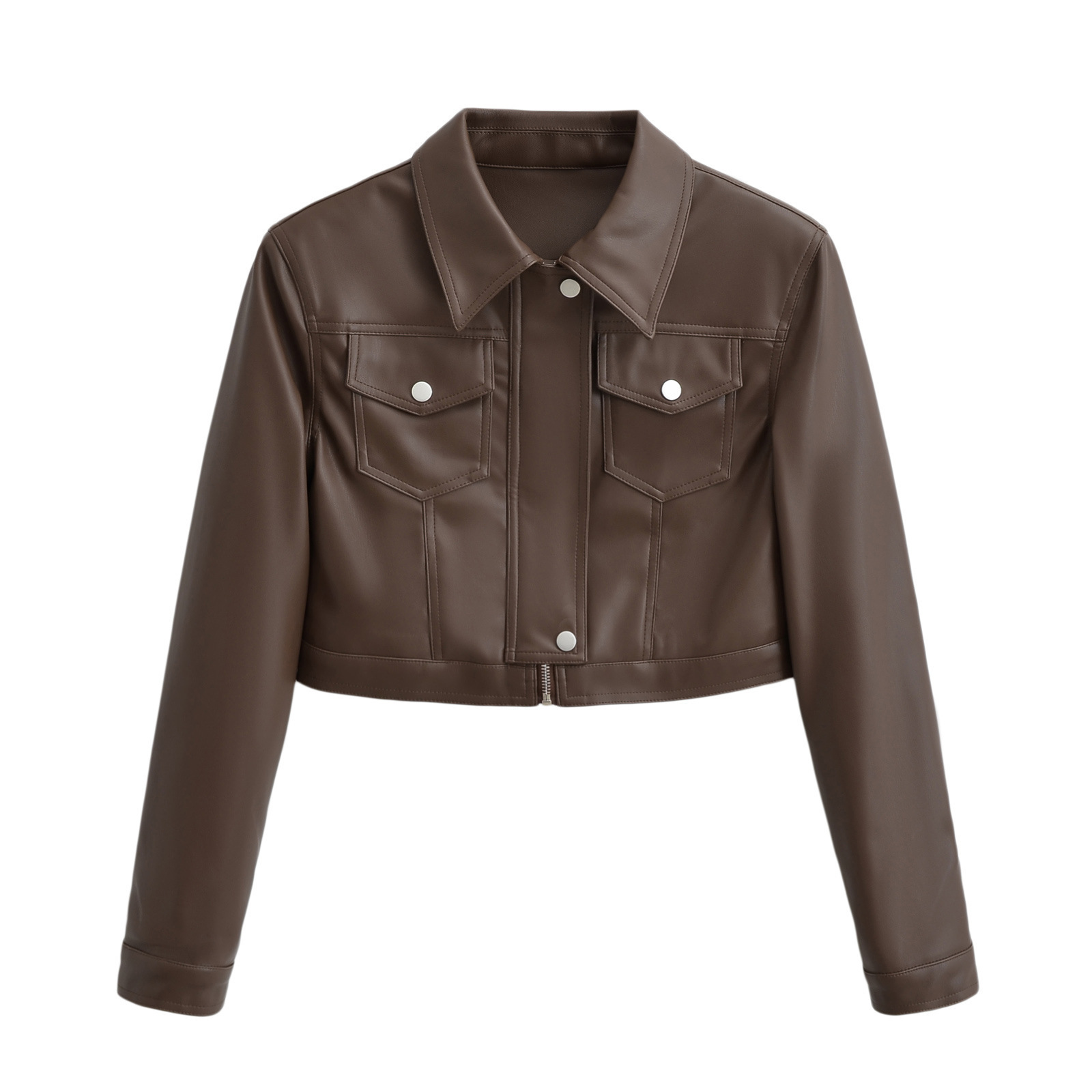 | nameOriginal | Hot Girl Short brown Leather Coat Women's Autumn Vintage Petite Casual Biker Lapel Slim-fit Jacket Top |