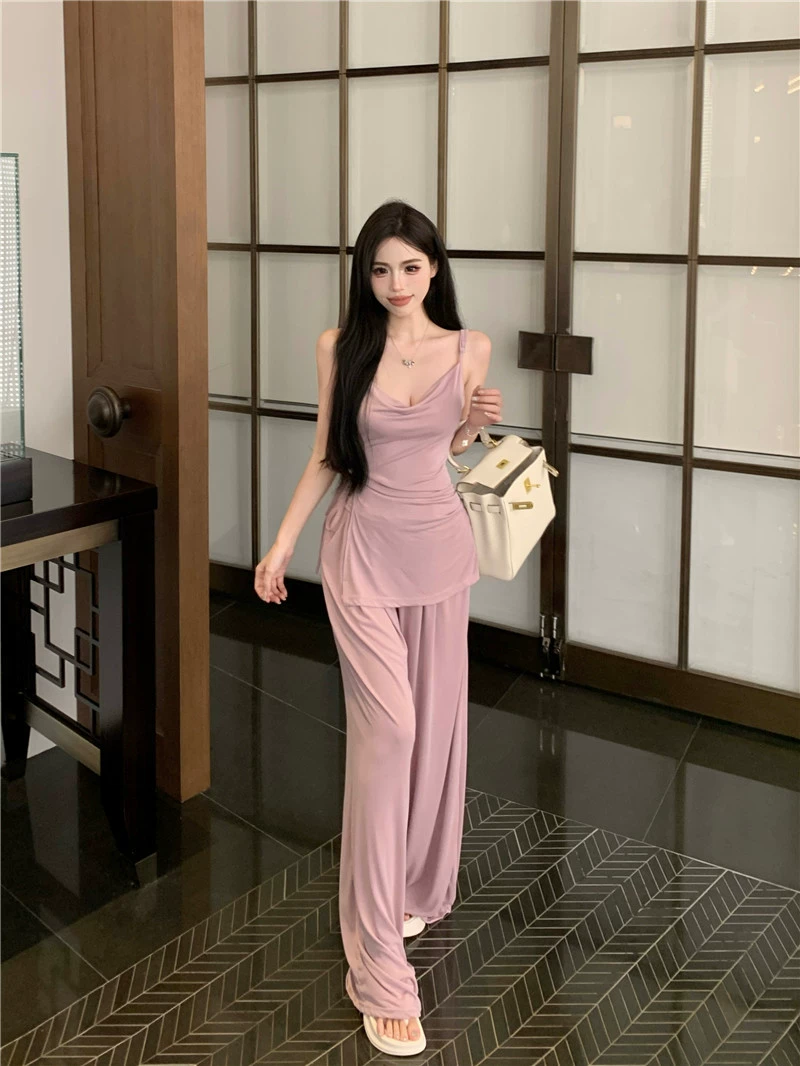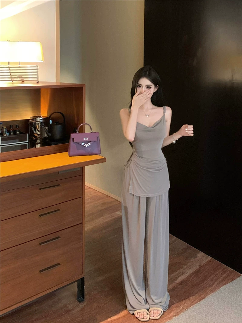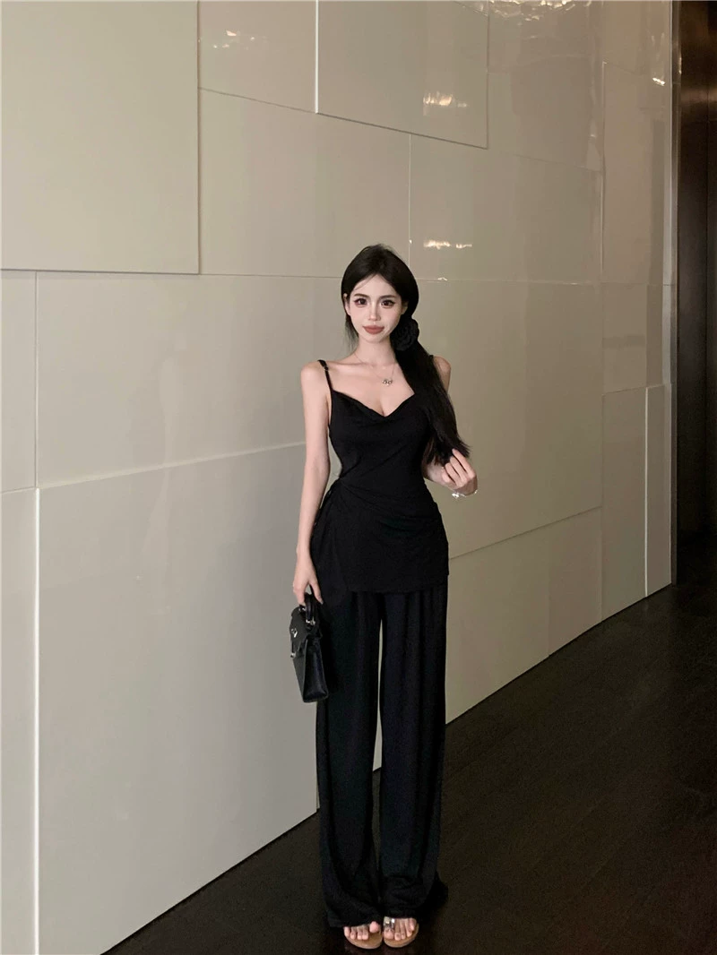 Hot Girl Slim Vest Casual Black Two-Piece Suspender Set