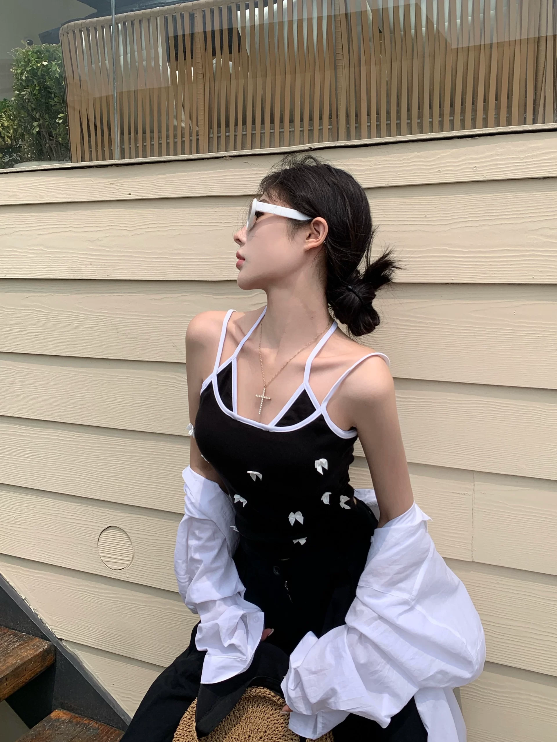 | nameOriginal | Hot girl style bow fake two-piece camisole women's summer 2024 new sexy backless slim short top |