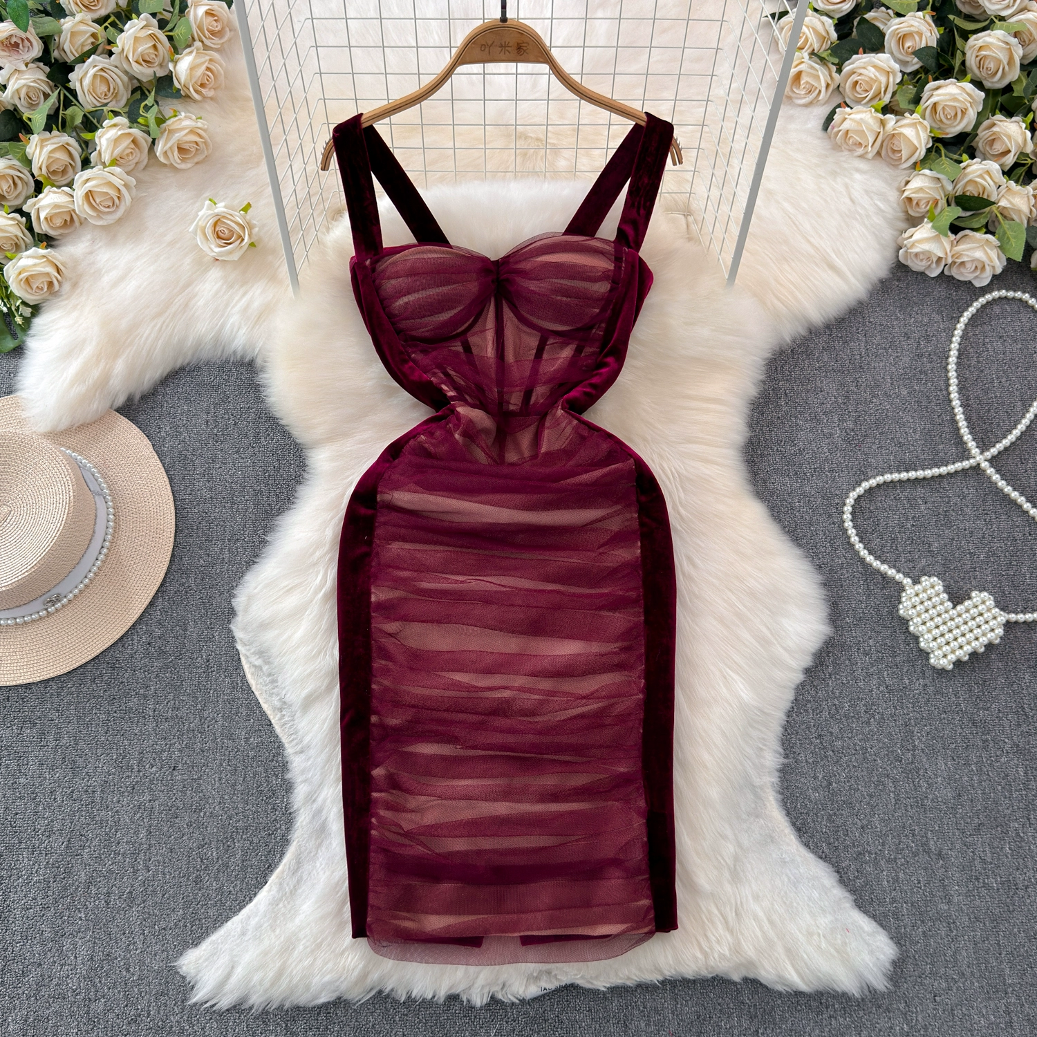 | nameOriginal | Hot girl style tube top suspender skirt summer fashion mesh pleated elastic tight slimming hip dress dress for women |