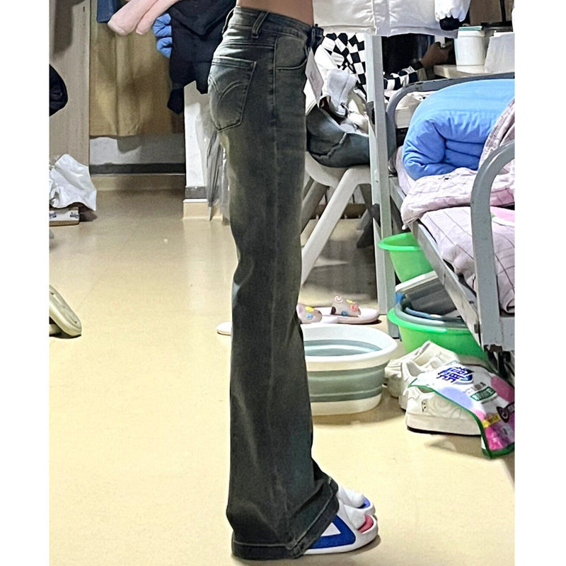 | nameOriginal | Hot Girl Vintage Old Cement Grey Micro-flared Jeans Women's High Waist Slim-fit Slimming Trendy Floor-mopping Trousers |