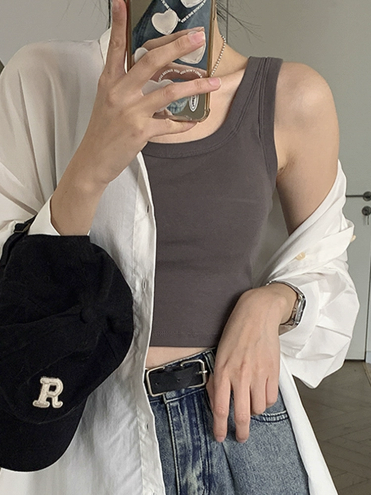 Hot girl with beautiful back, anti-exposure sports vest with suspenders