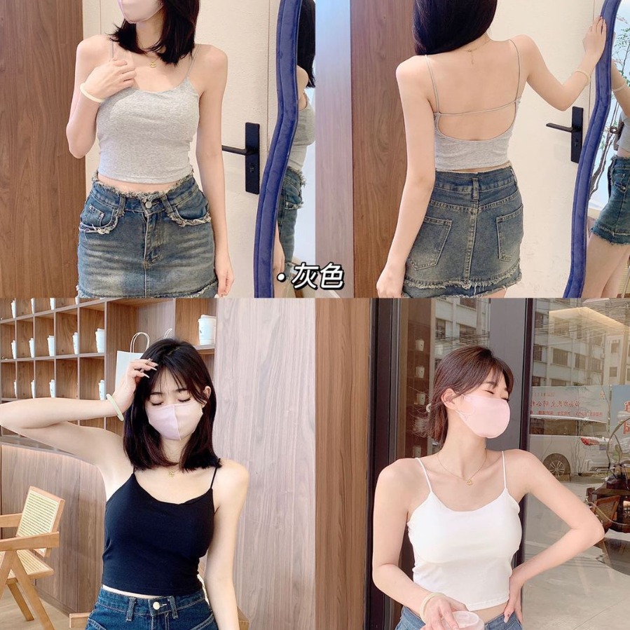| nameOriginal | Hot Girl with Chest Pad Backless Sling Small Vest Women's Summer White Beautiful Back Inner Design Short Top for Outer Wear |