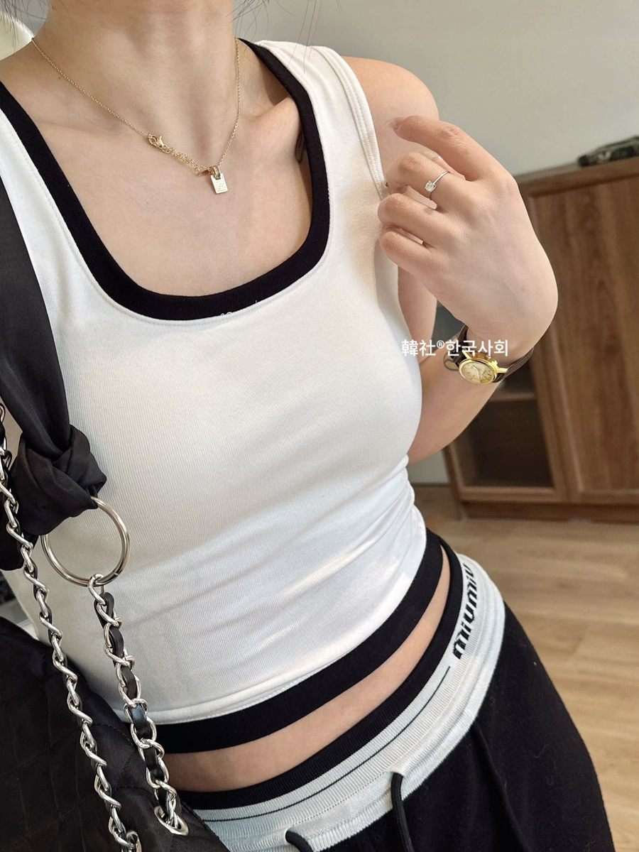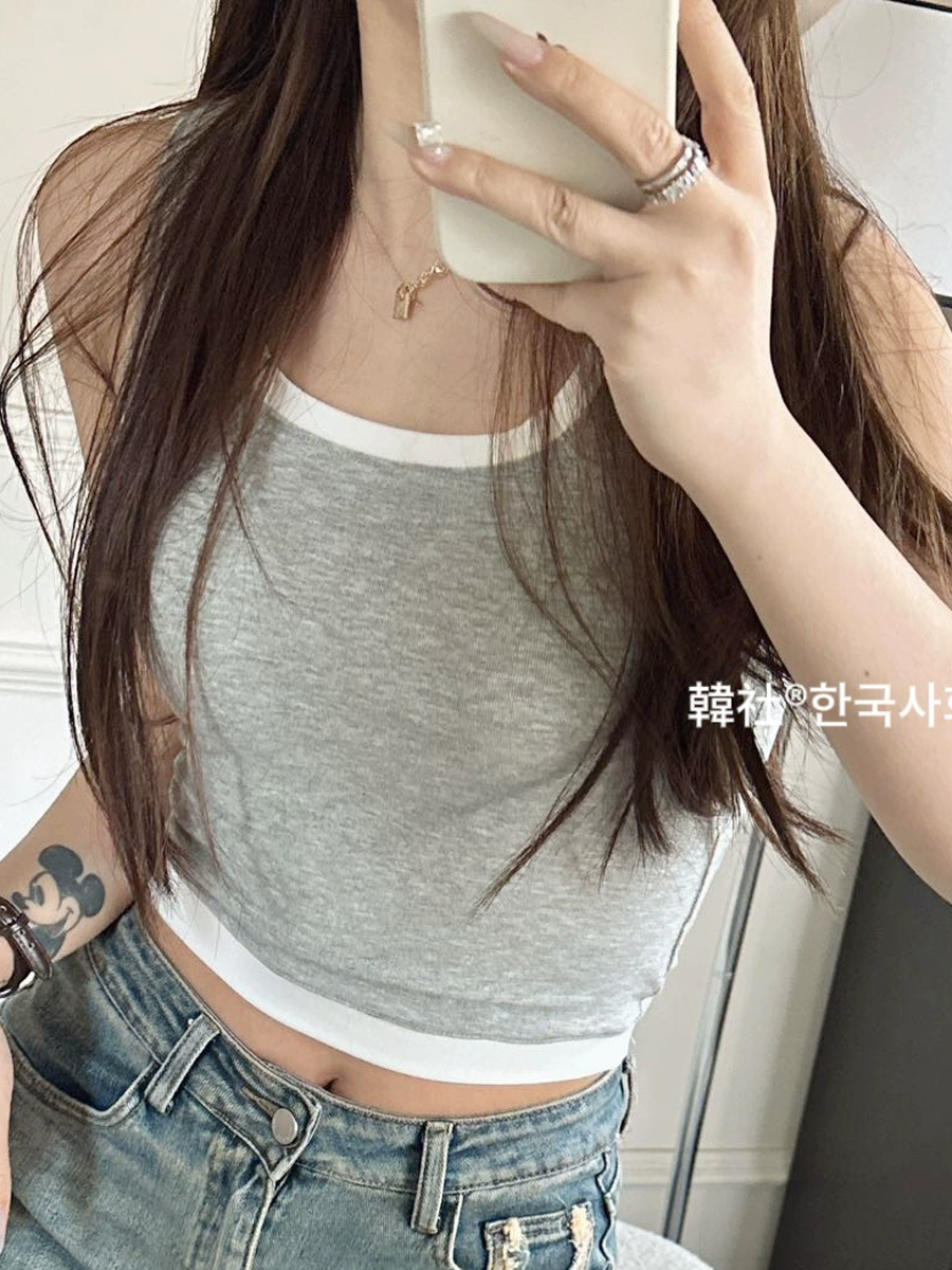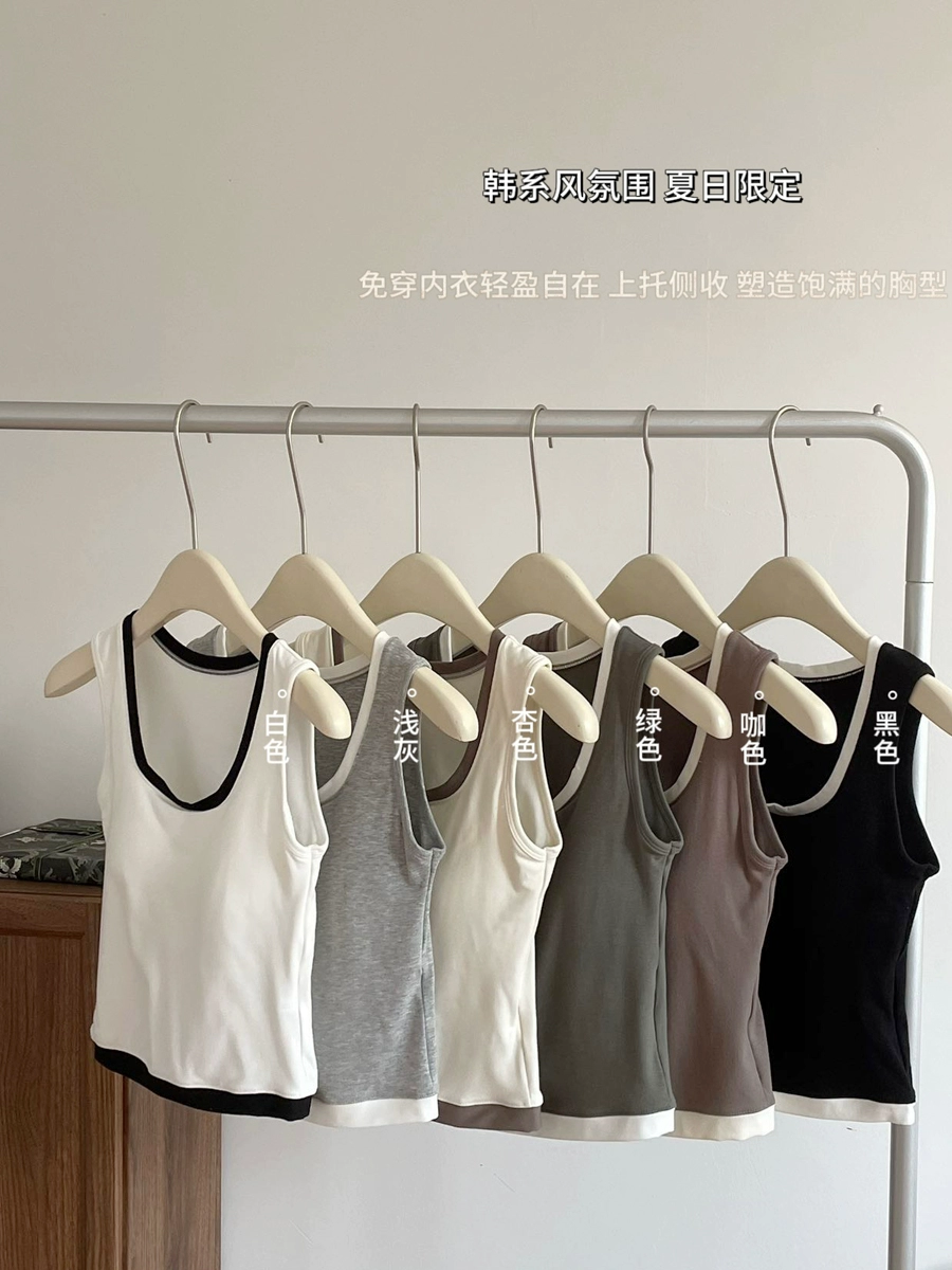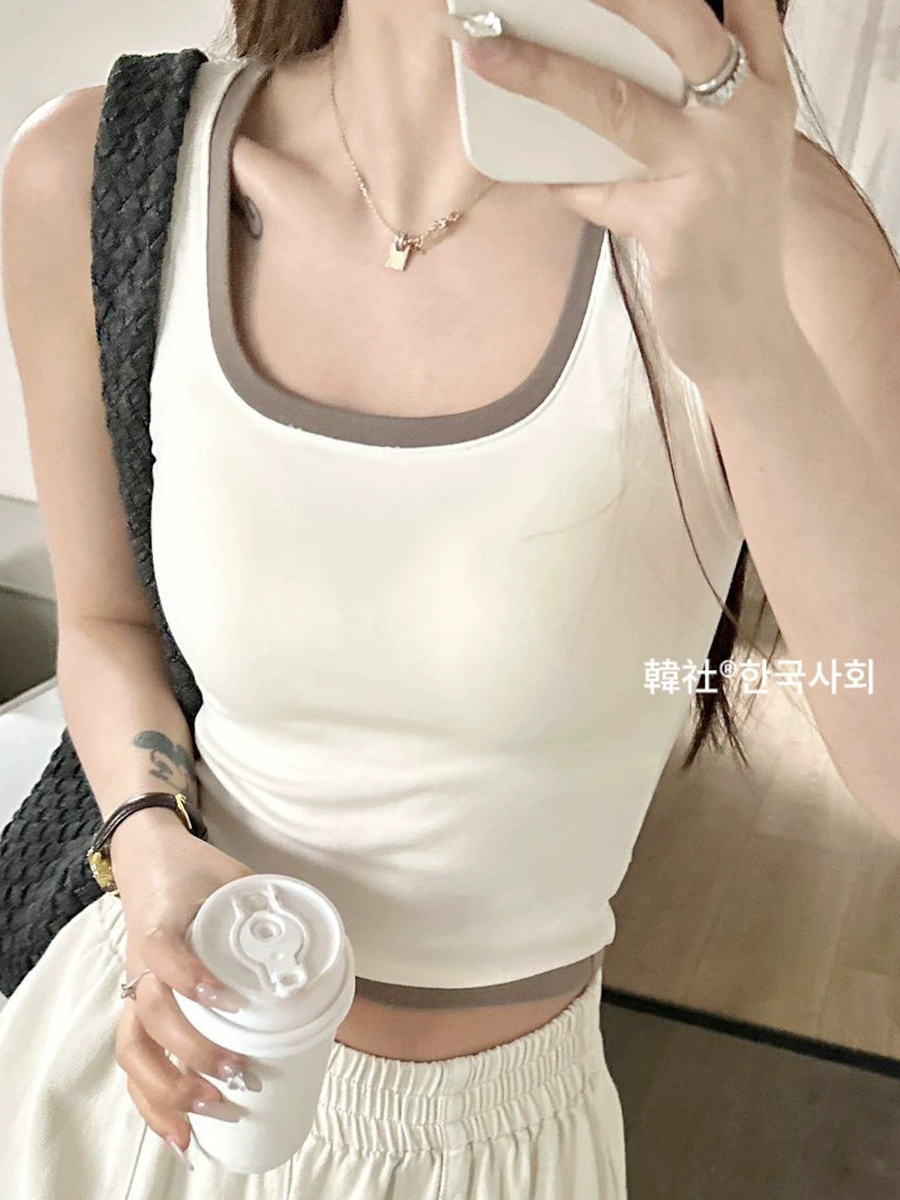 | nameOriginal | Hot girl with contrasting color, big U-neck vest, slim fit, comes with breast pad, integrated cup, suspender top, bottoming shirt |