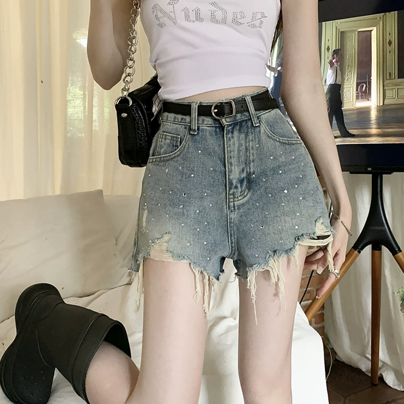 | nameOriginal | Hot girl with ripped holes in American high-waisted A-line hot pants, drilled |