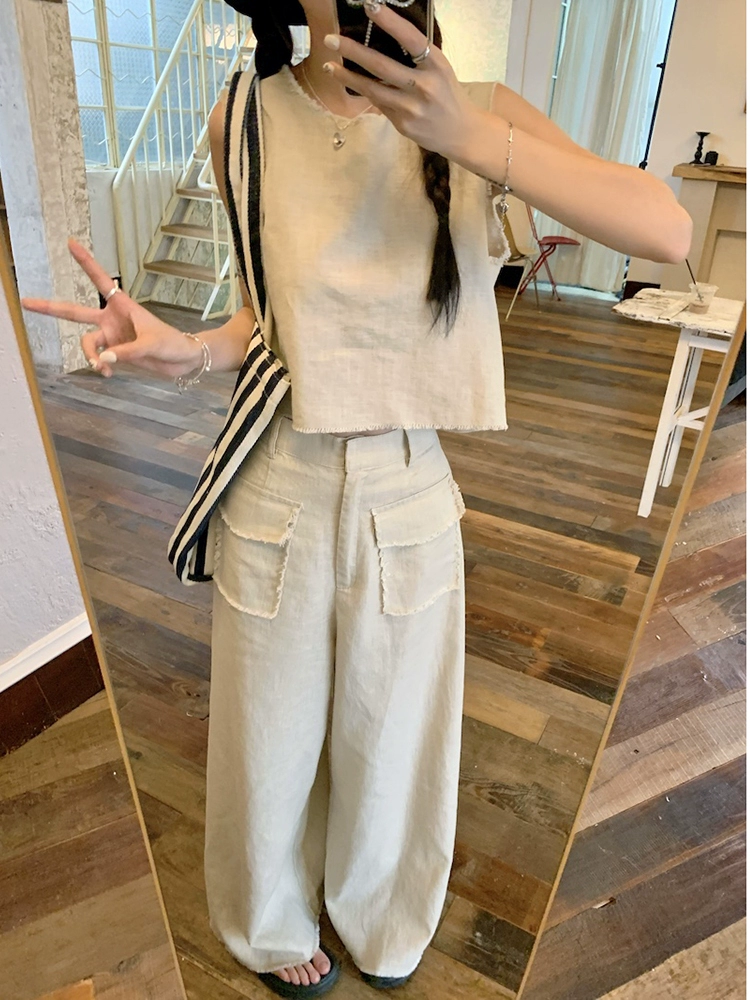 | nameOriginal | Hot girl with rough edges, wide-leg straight floor-length casual pants and vest |
