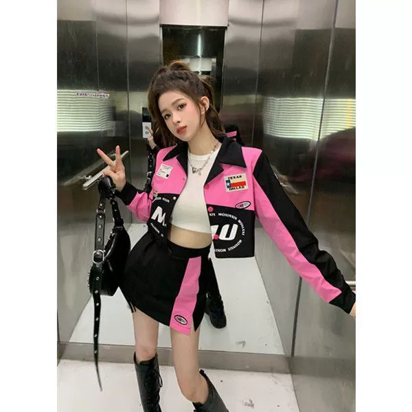 Hot girl’s autumn motorcycle style short skirt baseball uniform